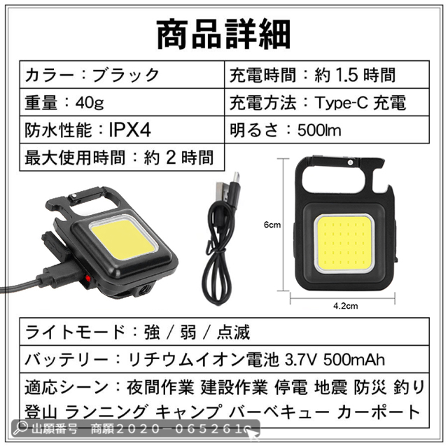 ミニ投光器/500lm/LEDライト/充電式/投光器/ケーブル付き/小型/軽量/LED/ミニ/USB充電式/ライト/ミニライト/充電ケーブル/カラナビ/キーホルダー/小型ライト/磁石付き/マグネット/高輝度/登山/防災/地震/停電/作業用/作業灯/ledワークライト/夜道/アウトドア用/キーホルダー式/釣り/キャンプ/緊急照明用/アウトドア用/BBQ/避難用品/非常用/夜間照明/現場工事/ハンディライト/ランタン/防災グッズ/持ち運び/屋外/屋外ライト/停電/停電対策/