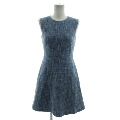 【中古】エムプルミエ M-Premier ワンピース ノースリーブ ミディ丈 日本製 ウール混 ラメ ツイード 青系 グレー 34
