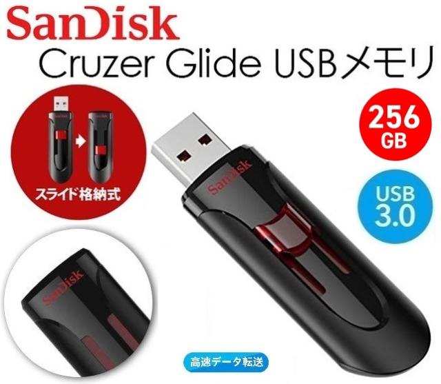SanDisk USBメモリー256GB サンディスクCruzer Glide USB3.0&2.0両対応フラッシュメモリ SDCZ600-256G-G35 スタイリッシュなデザイン