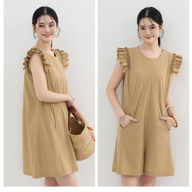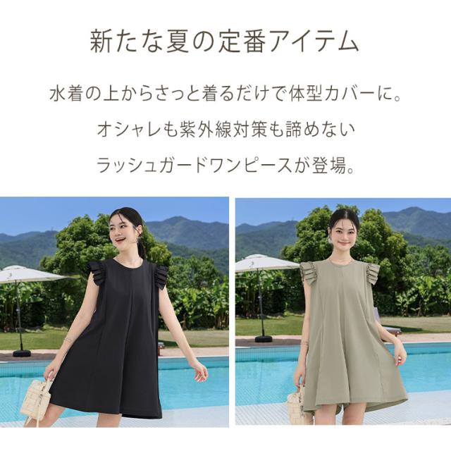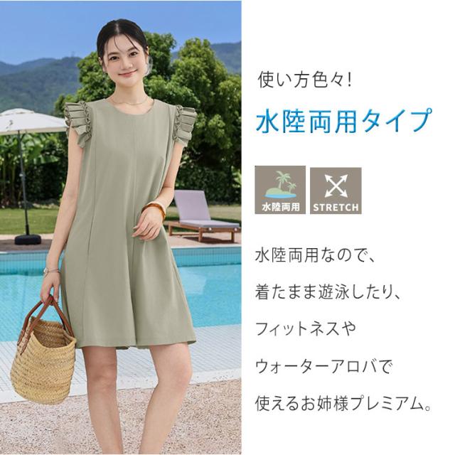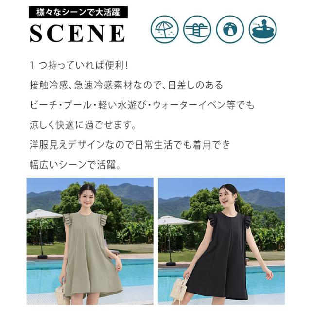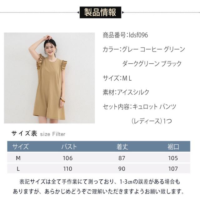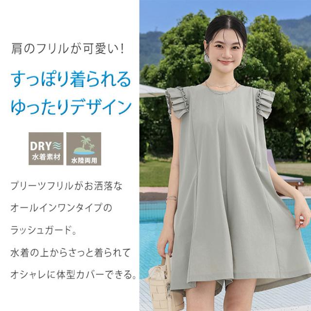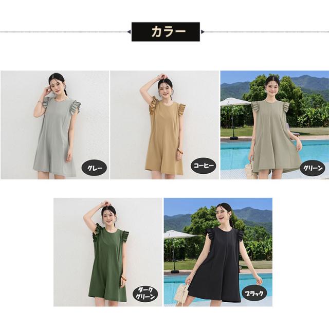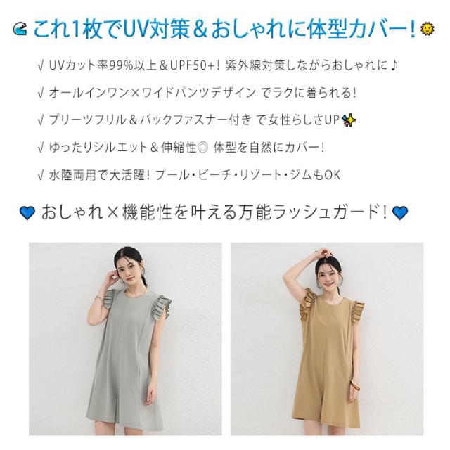 キュロット レディース パンツ オールインワン 紫外線対策 ラッシュガード サロペット スカート風 ハーフパンツ フリル キャップスリーブ PUF50+ UVカット 日焼け防止 接触冷感 涼しい Aライン 体型カバー お腹回り お尻ラインをカバー 柔軟