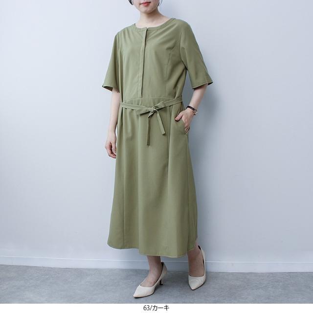 スキッパータイプの襟ぐりが顔周りをスッキリかつ上品に見せてくれるワンピースです。