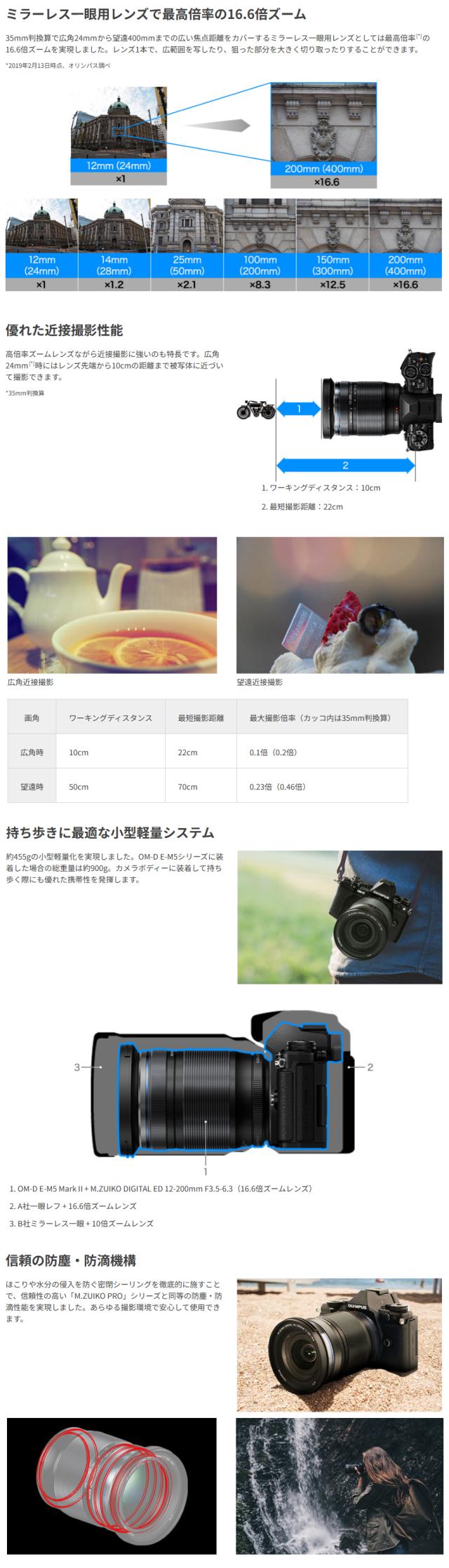 【M.ZUIKO DIGITAL ED 12-200mm F3.5-6.3 ズームレンズ の特長】
