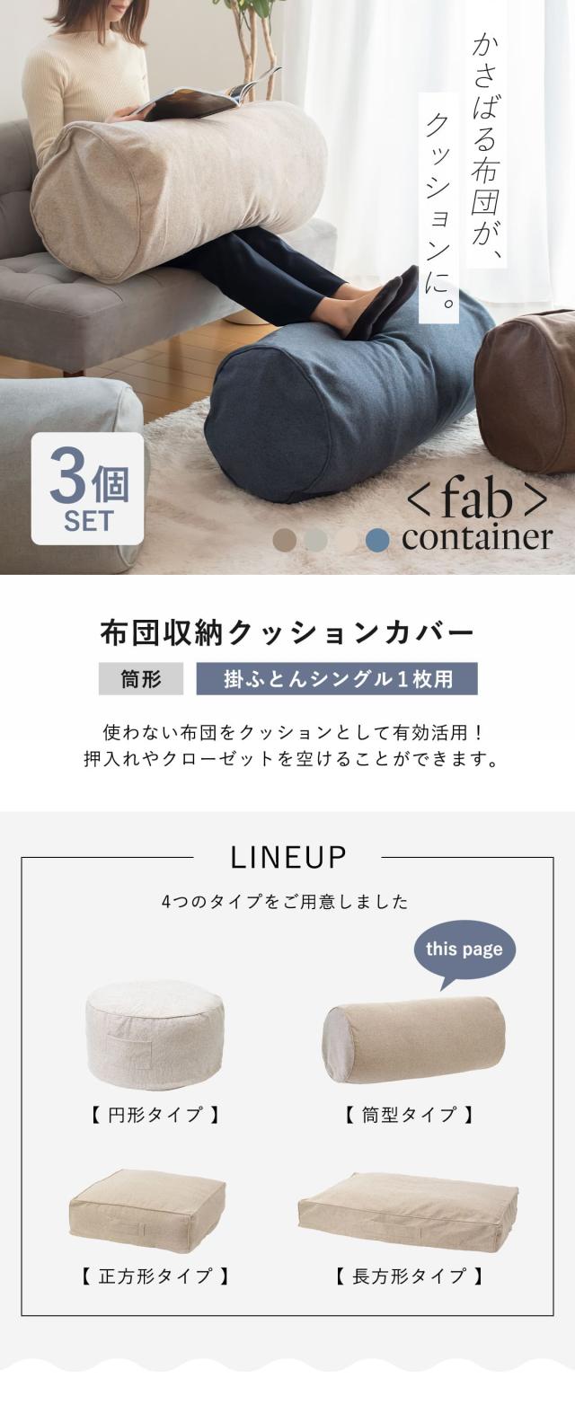 布団収納袋 布団収納クッションカバー 3個セット ( 布団収納 クッション 自立 縦 シングル 掛け布団用 布団収納ケース クッションカバー ふとん 布団 収納 丸型 足置き 抱き枕 隠しファスナー 布団収納カバー fab container )