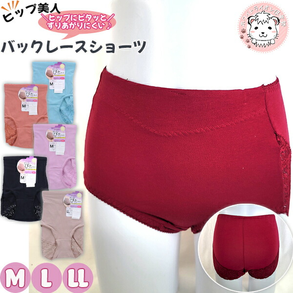 ヒップ美人 バックレースショーツ 2枚セット 綿混 スタンダードショーツ M/L/LL | レディース ショーツ パンツ しめつけない レギュラーショーツ はきこみふつう