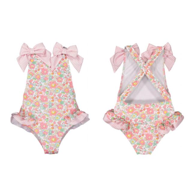 | 一目見た瞬間心惹かれるリボン&フリル付きな可愛いキッズ水着 スベスベな水着生地、日焼け止めしながらも動きやすい デイリーに使いやすいデザイン 着心地が良く、子供のデリケートな肌をケアする 夏を満喫できるかわいい水着、保育園や幼稚園のプールにおすすめ | |