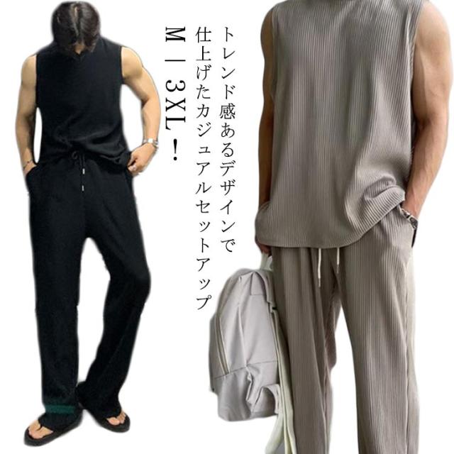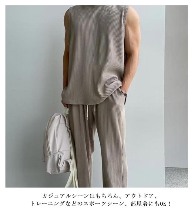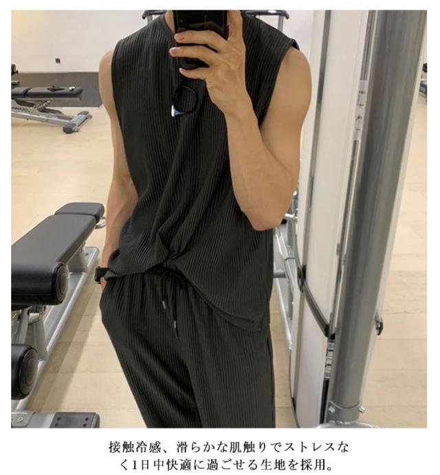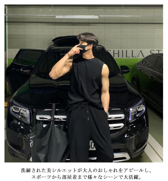 通気性 メンズ ノースリーブ 長ズボン ゆったり 運動着 スポーツウエア 大人男性 タンクトップ 伸縮性 トレーニングウェア 涼しい フィットネス Tシャツ 運動 ジム 無地 シンプル 大きいサイズ ストレッチ ポケット付き 筋トレ
