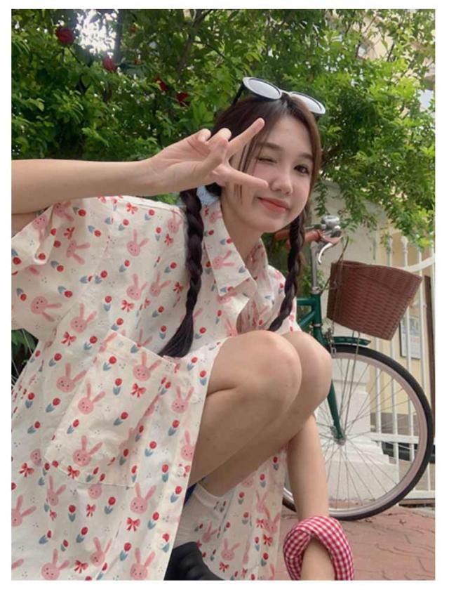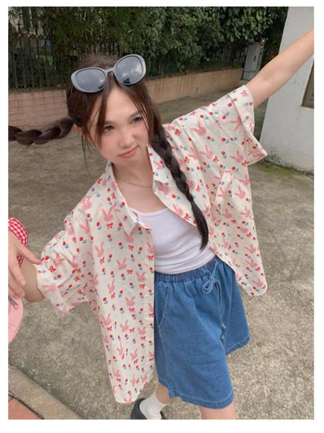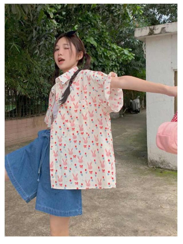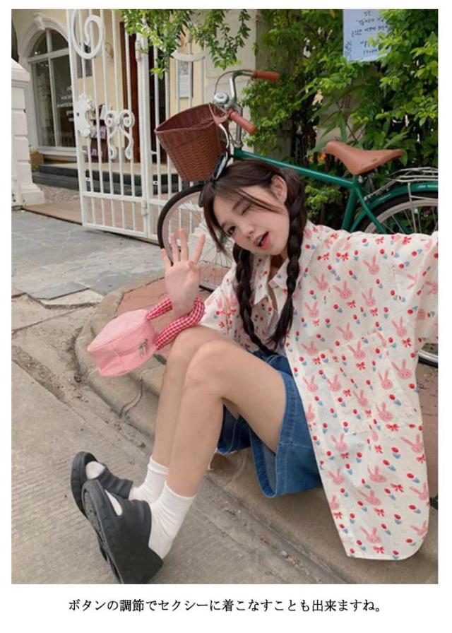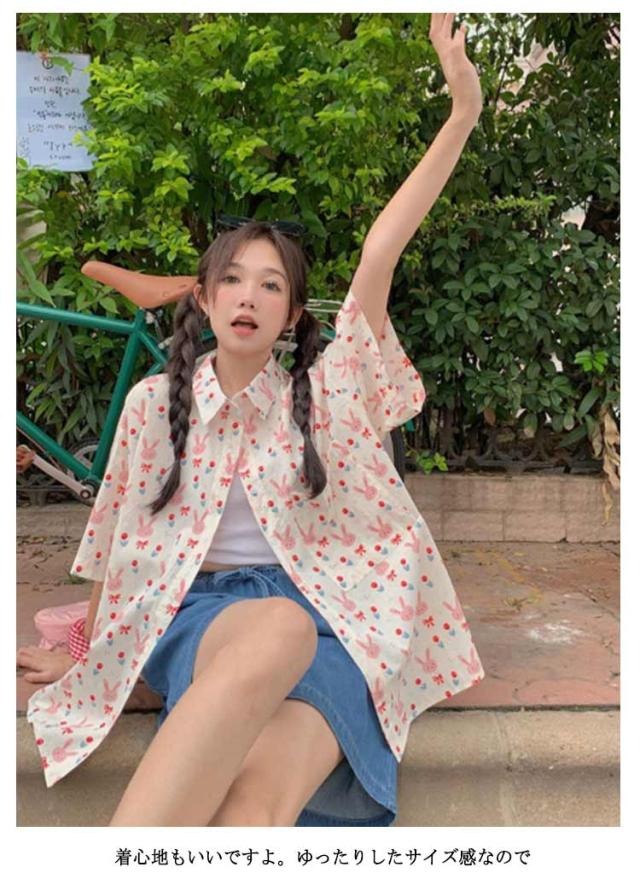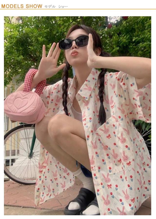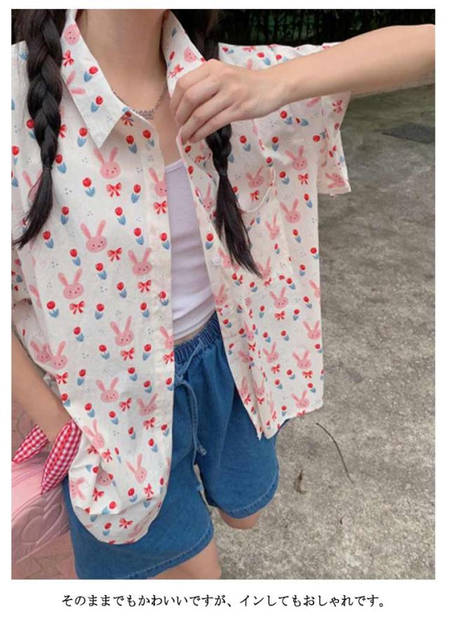 | きめのウサギがレトロかわいい半袖のアロハシャツ。 着心地もいいですよ。ゆったりしたサイズ感なので ボタンの調節でセクシーに着こなすことも出来ますね。 そのままでもかわいいですが、インしてもおしゃれです。 | |