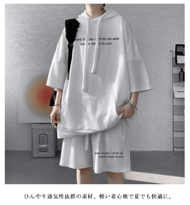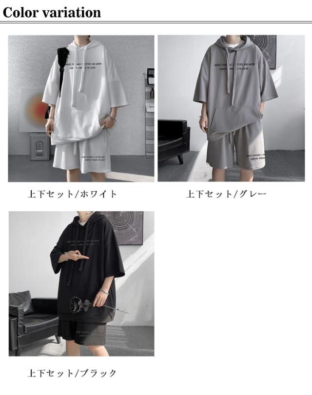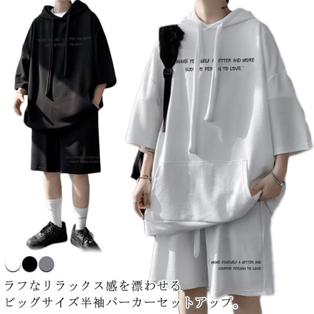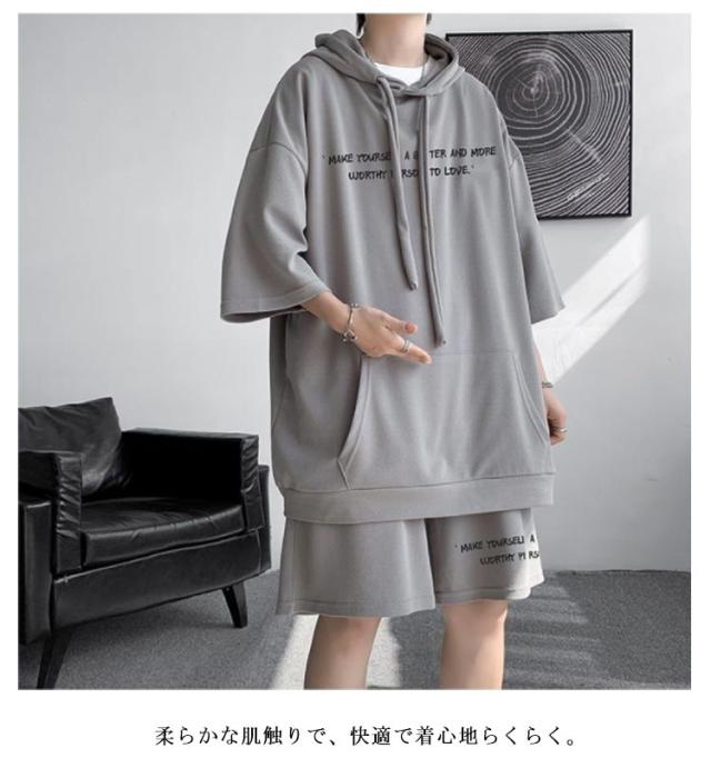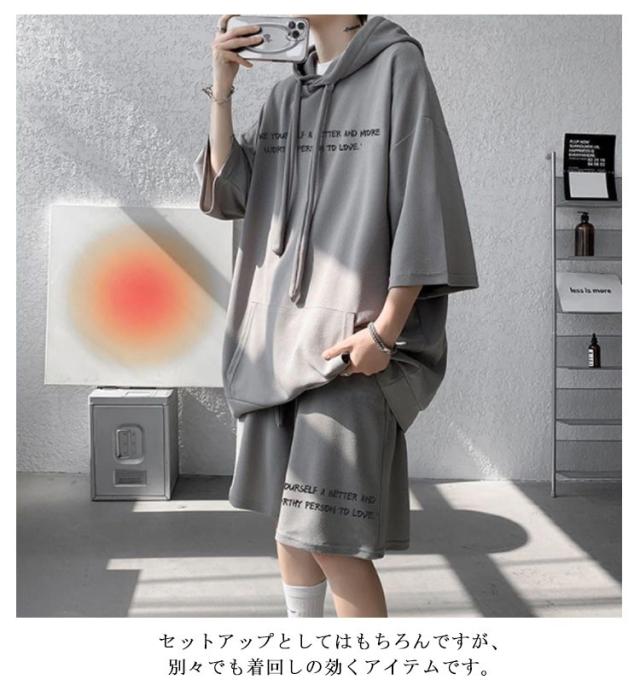ジャージ 半袖 スウェット パーカー 大きいサイズ ショートパンツ メンズ カジュアル上下セット セットアップ おしゃれ カジュアル上下セット ストリート系 短パン プルオーバー 韓国ファッション 夏服 上下セット おしゃれ カジュアル 体型カバー 運動着 ギフト プレゼント