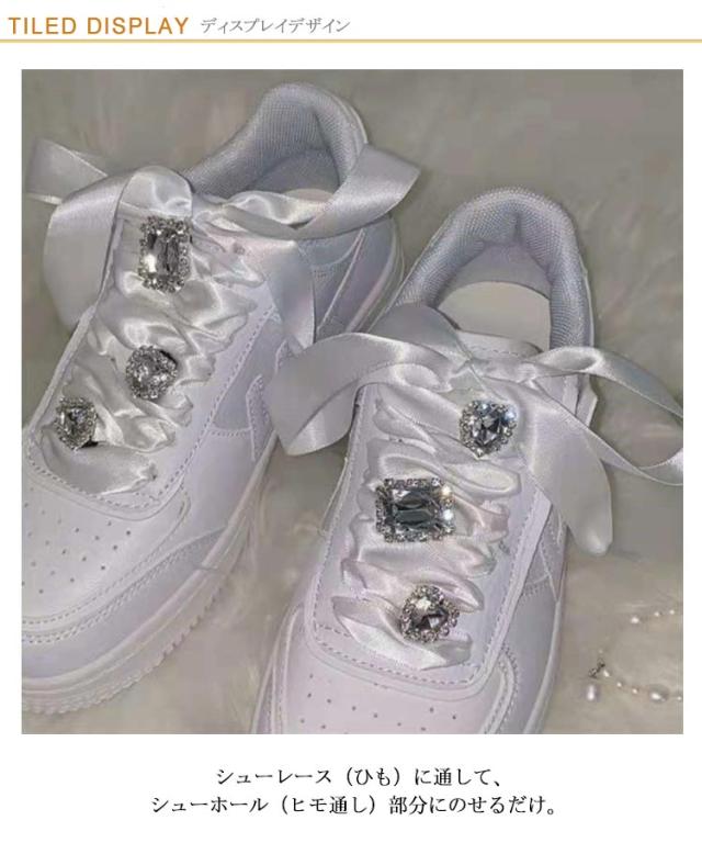 | 6個セット!スニーカーアクセサリーとして靴ひもに通すだけの簡単シューピアス! シューレース(ひも)に通して、シューホール(ヒモ通し)部分にのせるだけ。 ? キラキラと反射するのでシンプルな白スニーカーもランクアップします ? シンプルなスニーカーを華やかに飾ることができます | |