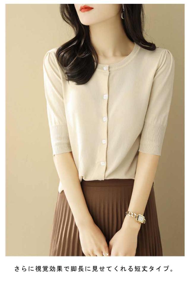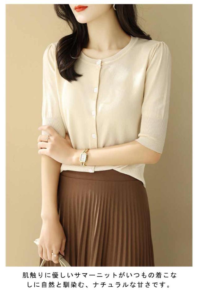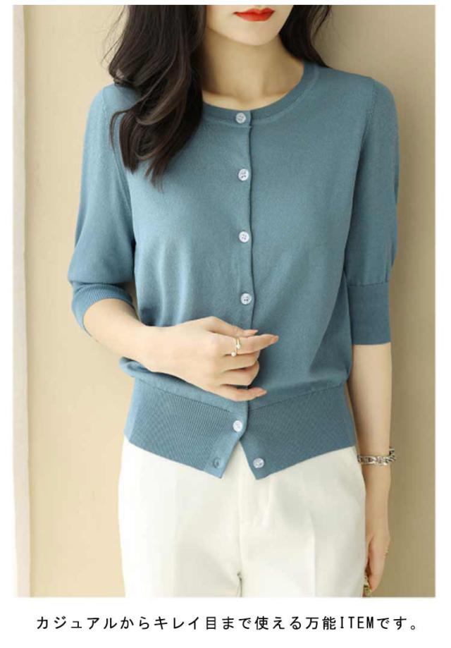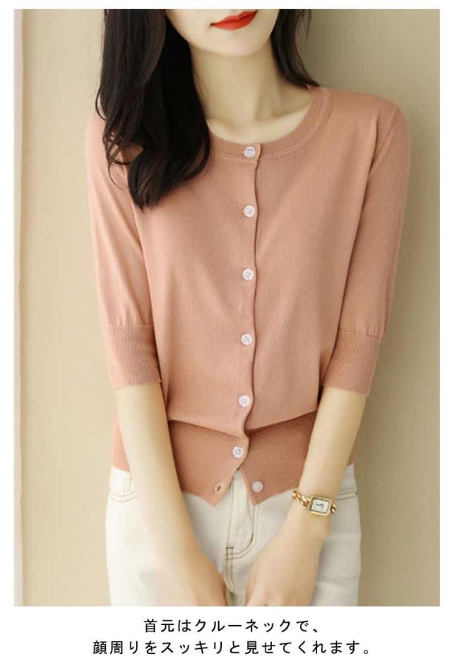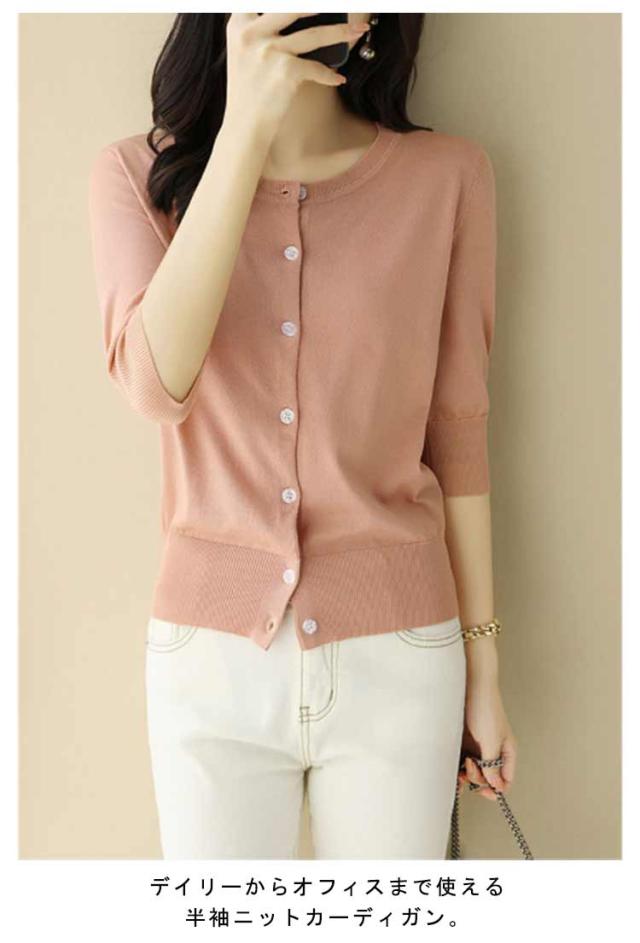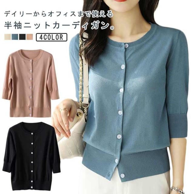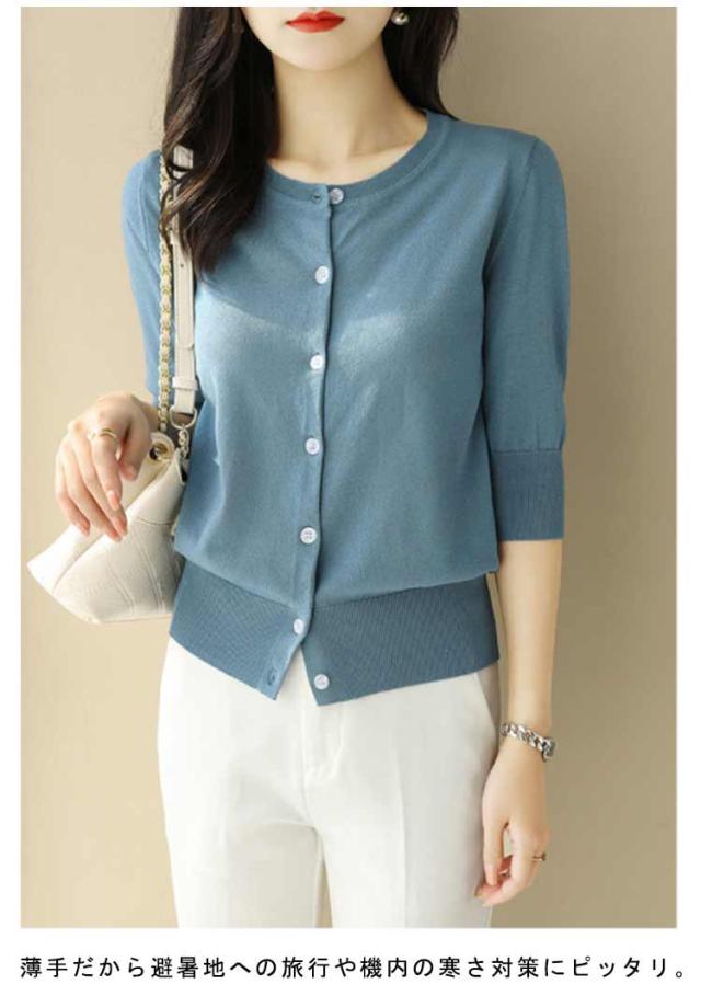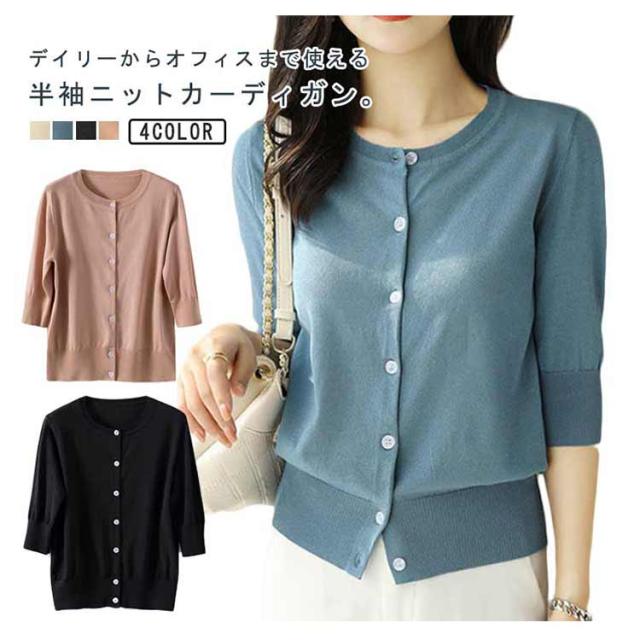 レディース トップス 薄手 サマーニット 半袖 ニット カーディガン サマーカーディガン 接触冷感 羽織り 五分袖 丸首 カーディガン ニットカーディガン 通勤 春夏 夏 夏服 カジュアル 涼しい 無地 冷房対策
