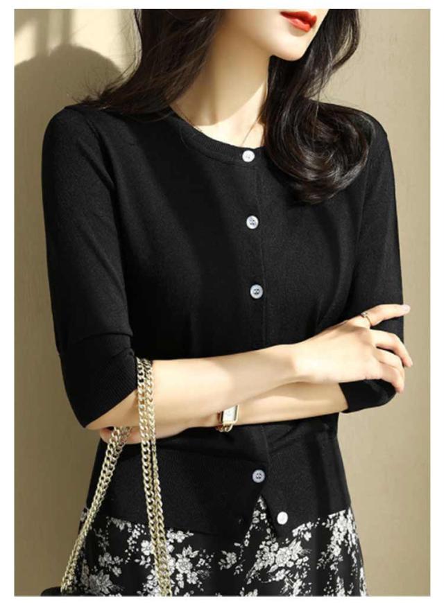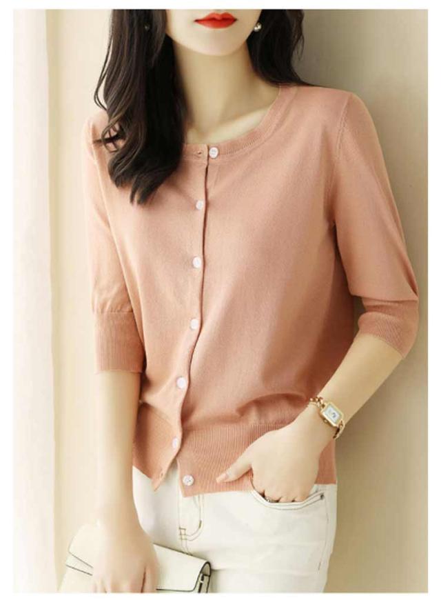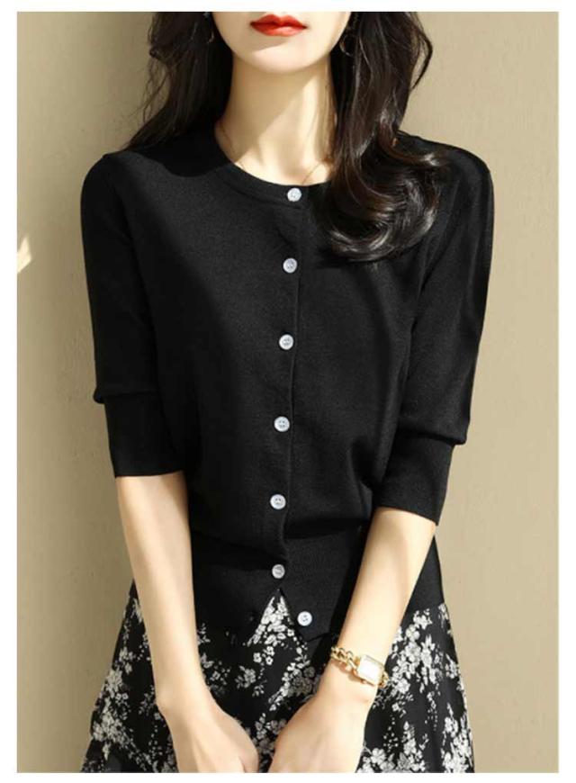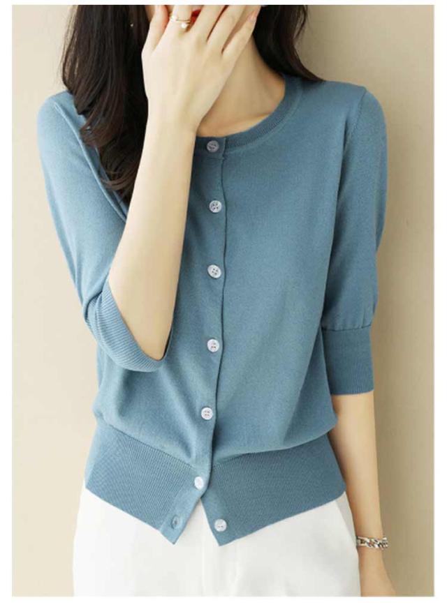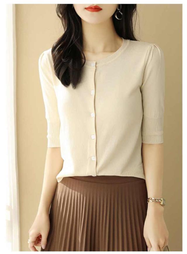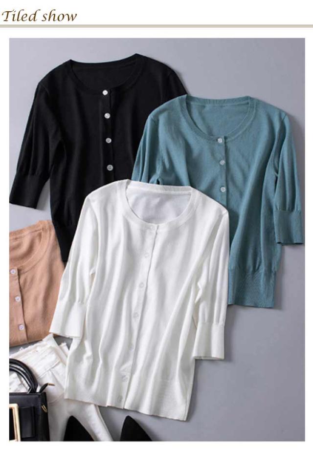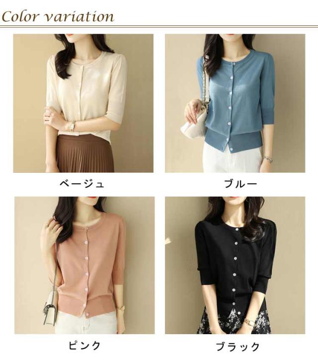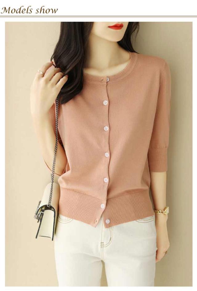 レディース トップス 薄手 サマーニット 半袖 ニット カーディガン サマーカーディガン 接触冷感 羽織り 五分袖 丸首 カーディガン ニットカーディガン 通勤 春夏 夏 夏服 カジュアル 涼しい 無地 冷房対策