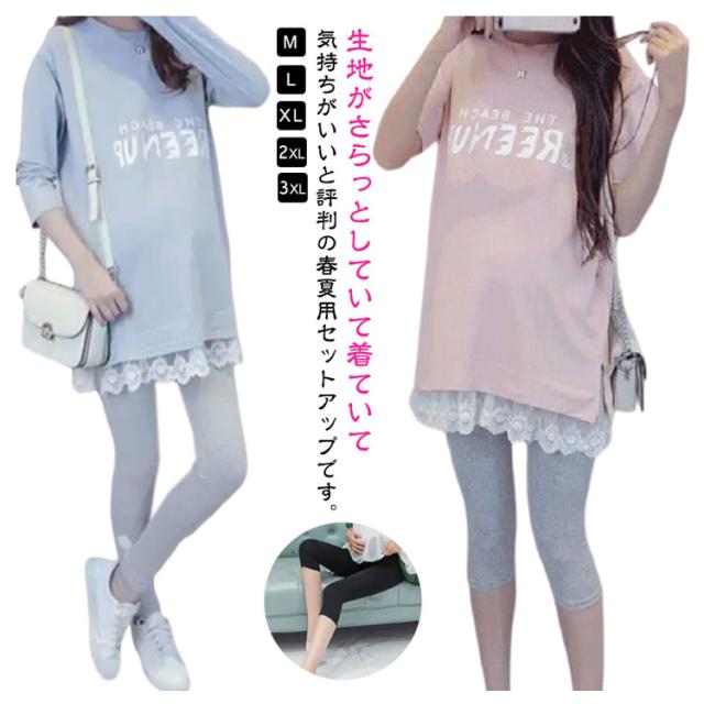 セット チュニック 半袖トップス 妊婦服 Tシャツ 半袖/長袖&レギンス 薄い 涼しい トップス マタニティ セットアップ 7分丈レギンス ボトムス スウェット 出産 授乳 産後 上下セット 出産入院 春夏 授乳服 美脚 Tシャツ