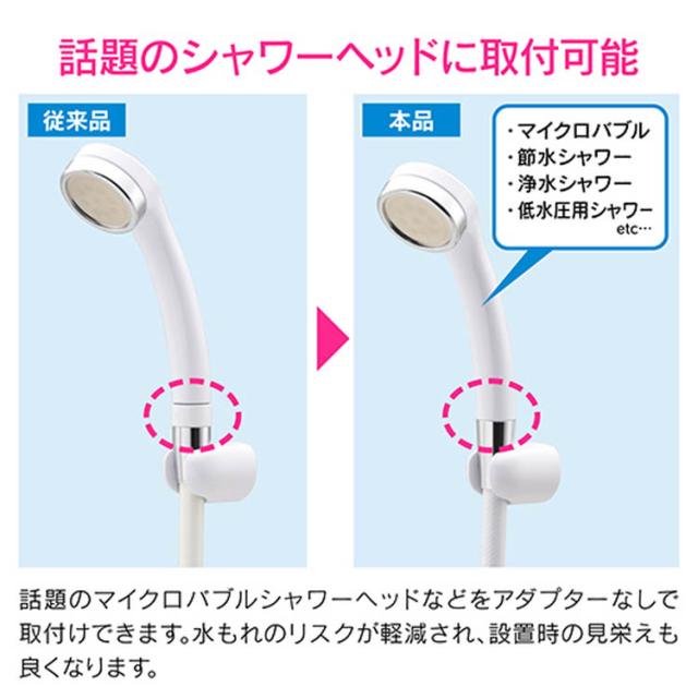 ●シャワーヘッド側のネジがG1/2になっているので・話題のマイクロバブルシャワーヘッドや節水シャワーヘッドなどをアダプターなしで取付けできます。