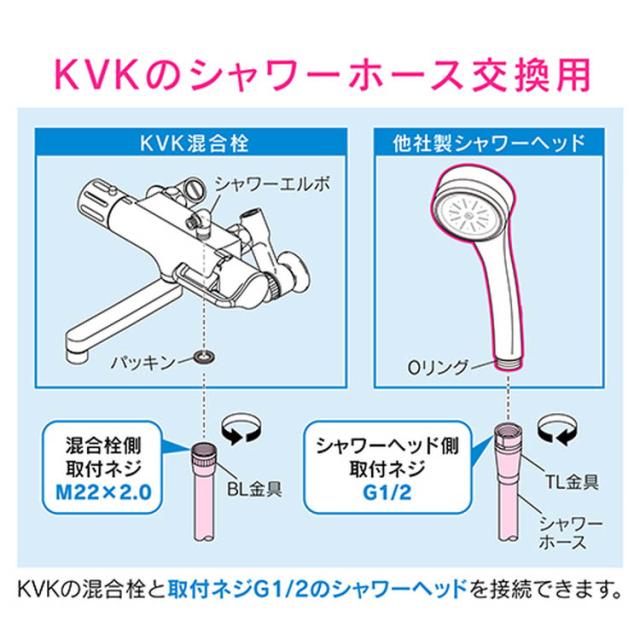 | 使用温度:1〜60度 使用圧力:0.05〜0.75MPa 色:シルバー 取付ネジサイズ:M22×2(混合栓側)・G1/2(シャワーヘッド側) (材質)ポリ塩化ビニル樹脂・黄銅 |