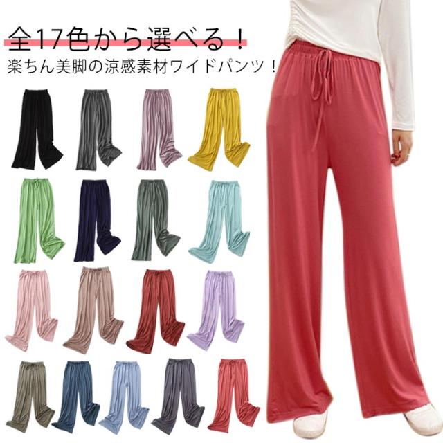 | 全17色から選べる!楽ちん美脚の涼感素材ワイドパンツ! 薄手で接触冷感素材を採用する。穿き心地がたまらなく心地良い。 ラクなだけじゃない。計算された美フレアはいろんなスタイルに合う万能ボトム! 柔らかくも弾力のある優秀ストレッチ素材も秘密! ヨガやエアロビクスなどのスポーツウェアとして、おやすみタイムのパジャマやリラックスできるルームウェアとしても◎ ひんやり薄手の生地、この夏、持っていて間違いなしの1枚! | |