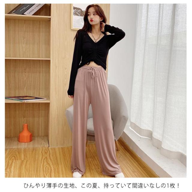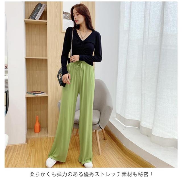 薄手 ダンスパンツ ロング丈 レディース 薄手 ヨガパンツ パンツ ガウチョパンツ リラックスパンツ 部屋着 イージーパンツ ストレッチ ルームウエア ワイドパンツ ルームパンツ シンプル 無地 ロング丈 美脚 楽チン ゆったり