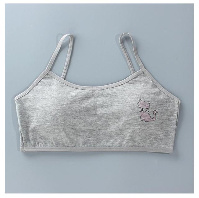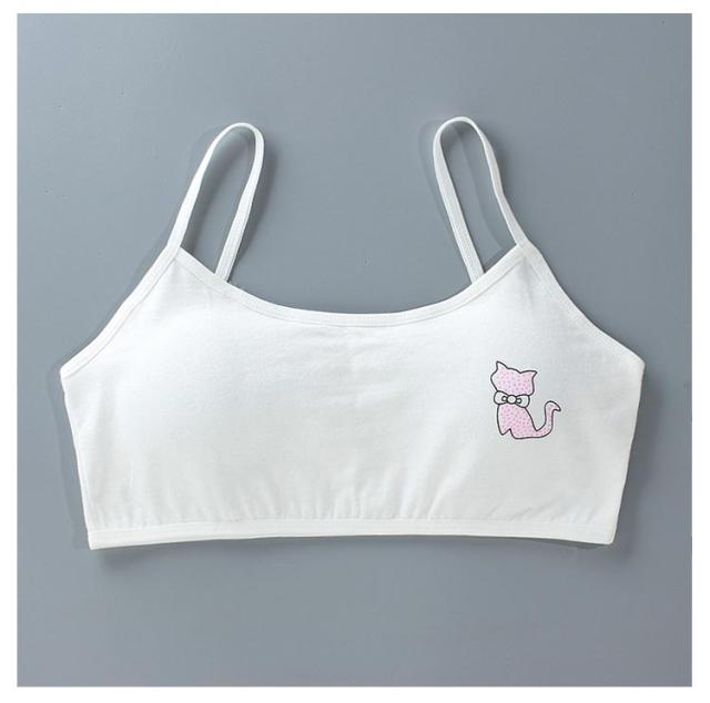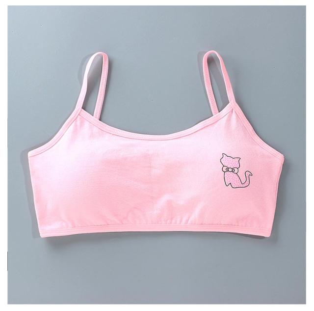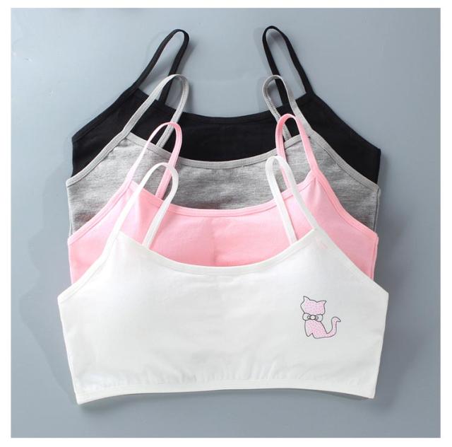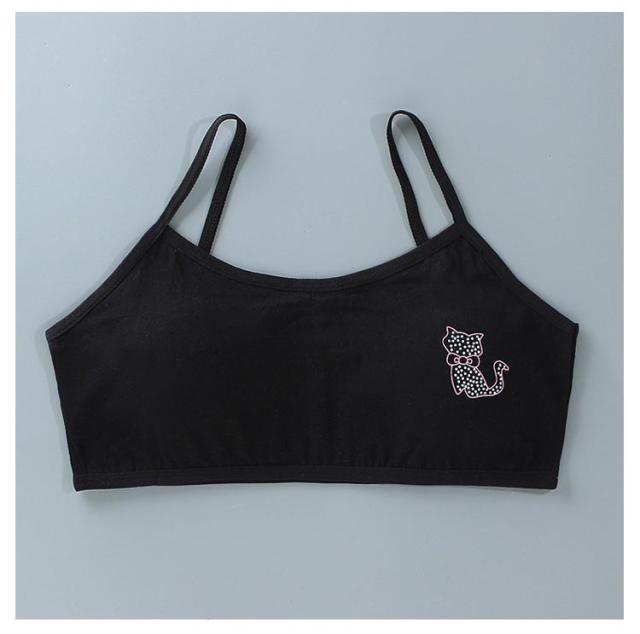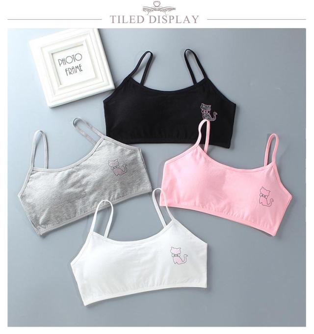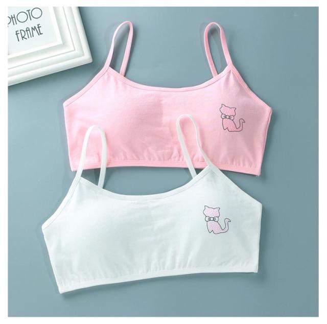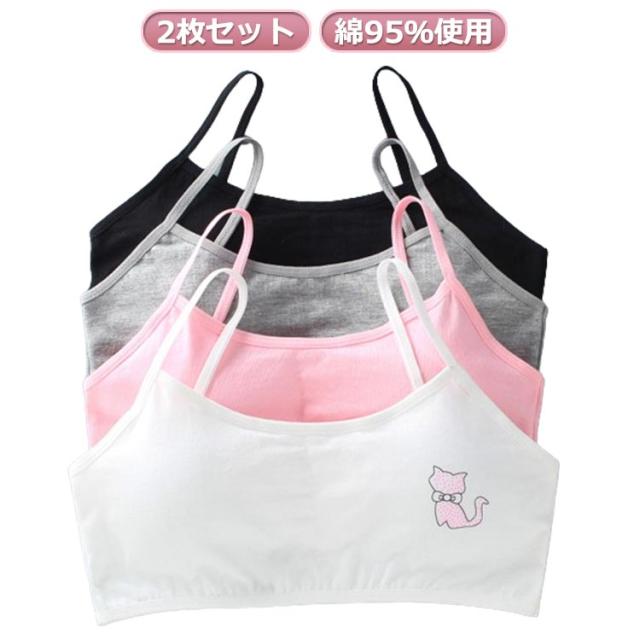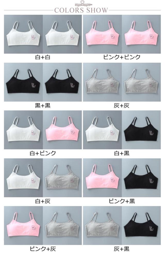 キッズ ジュニアブラ 小学生 2枚セット スポーツ 中学生 肌着 吸水速乾 綿 キッズ 猫プリント 8-18歳 下着 取り外し可能パッド付 女子 コットン 部活 ジュニアブラ 汗 白 ピンク 灰 黒