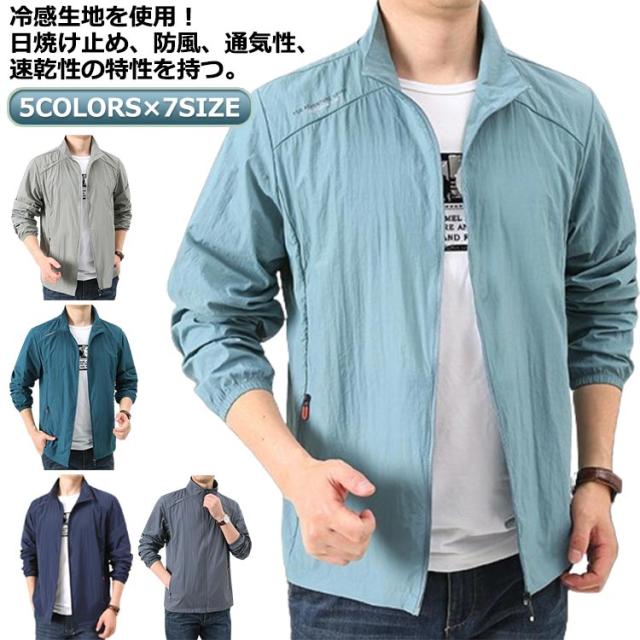 uvカット 日焼け止め 立ち襟ジャケット 冷感 パーカー 涼しい メンズ uv 薄手 伸縮性 uvカット パーカー 接触冷感 フードなし uvパーカー ラッシュガード uvカット 速乾性 薄手 紫外線対策 アウトドア 夏 スポーツ 通勤 通学