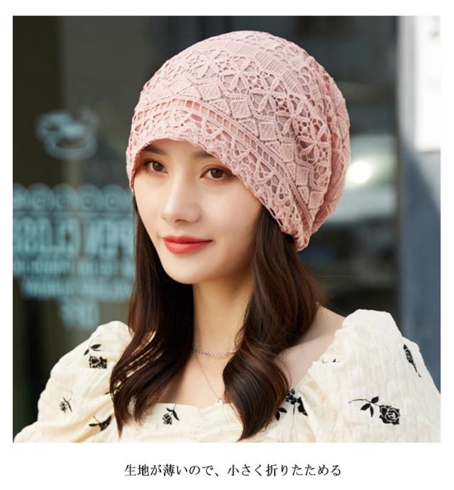 | レース透かし編みニット帽 透かし編みで通気性もよく暑い日も快適♪ 美しいデザインと、肌触りの良い素材で作られた ストレッチでパッとかぶっても頭に柔らかくフィット 普段用はもちろん、抗がん剤治療、医療用帽子にも最適 生地が薄いので、小さく折りたためる | |