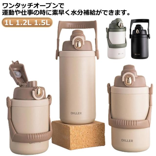 ワンタッチオープン 1L スポーツジャグ 水筒 保温 ハンドル付き 真空断熱 保冷 ステンレスボトル 直飲み 水筒 1.2L スポーツドリンクOK 1.5L 魔法びん キッズ 子ども 男の子 学校 遠足 部活 持ち運び