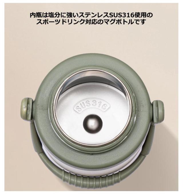 | ・ワンタッチオープンで運動や仕事の時に素早く水分補給ができます。 ・お茶や水だけでなくスポーツドリンクも入れることができます。 ・ワンタッチオープンで開けやすく、ロックリング付きで安心。 ・内瓶は塩分に強いステンレスSUS316使用のスポーツドリンク対応のマグボトルです。 ・真空二重構造なので飲み物の温度をしっかりキープします。 ・保温・保冷効果があるので、1年中お使いいただけます。 ・ラク持ちハンドルでより持ちやすく、スポーツシーンに最適なジャグです! | |