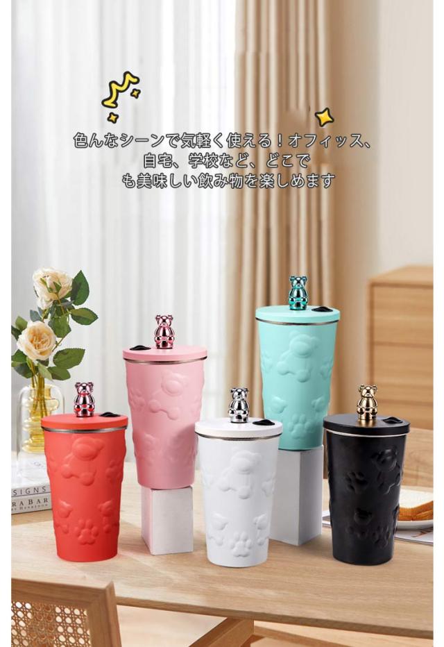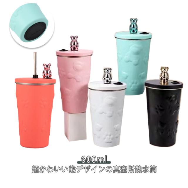 蓋付き 保冷 こぼれない ストロー 持ち運び 水筒 ステンレスマグカップ 熊 熊 ステンレス マグボトル 600ml コーヒーカップ カップ 二重構造 真空断熱 携帯マグカップ コーヒーカップ 保温 車 結露しない 直飲み アウトドア 母の日 プレゼント