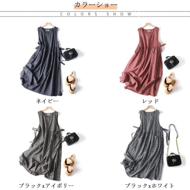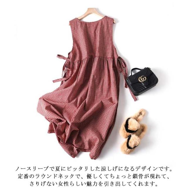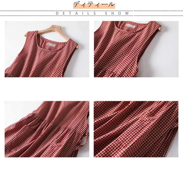 ウエストマーク ロングワンピース ノースリーブ ギンガムチェックワンピース ワンピ ロング丈 ギンガムチェックワンピース 夏 ロング 無地 体型カバー ゆったり チェック柄 Aライン フレア 定番 春 ゆるっとワンピース 大きいサイズ カジュアル 30代 40代