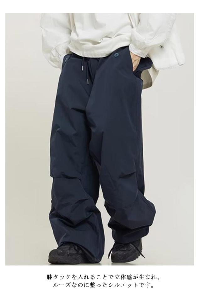 | ボリュームのある立体的なカーゴパンツの登場です。 膝タックを入れることで立体感が生まれ、ルーズなのに整ったシルエットです。 薄手ながらもパシっとした生地感で、良シルエットを崩さず保ちます。 ウエストは紐でお好みのフィット感に調整が可能。 | |