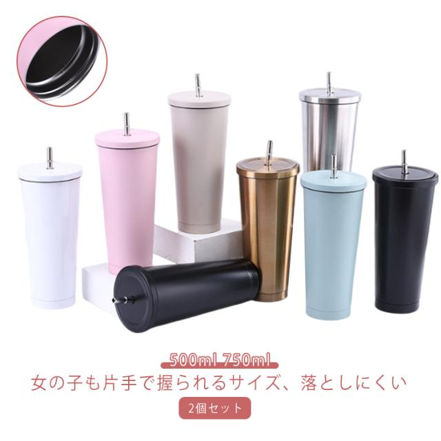 2個セット ステンレスタンブラー 蓋つき ストロータンブラー 500ml 750ml 真空二重 保温 保冷 ストロー マグボトル 水筒 こぼれない コーヒーカップ おしゃれ ステンレス 子供 大人 ストローボトル オフィス デスクワーク プレゼント
