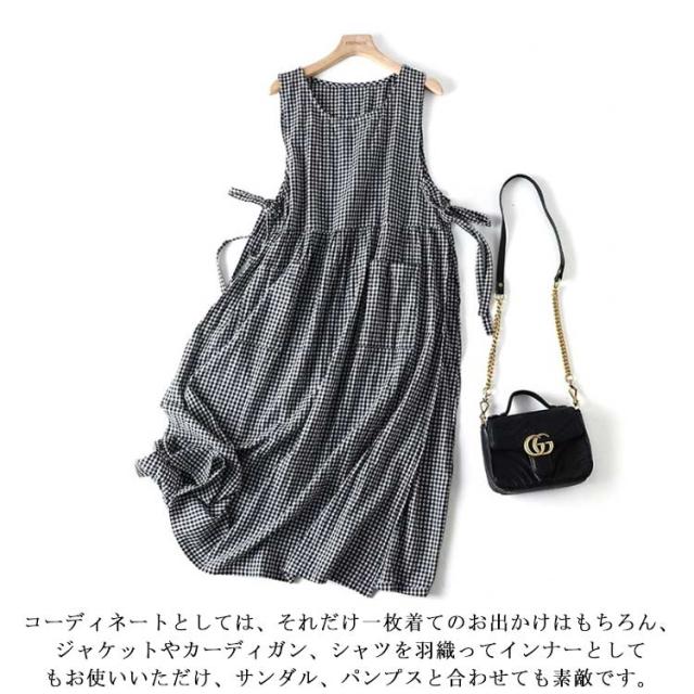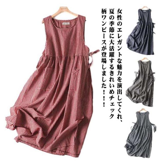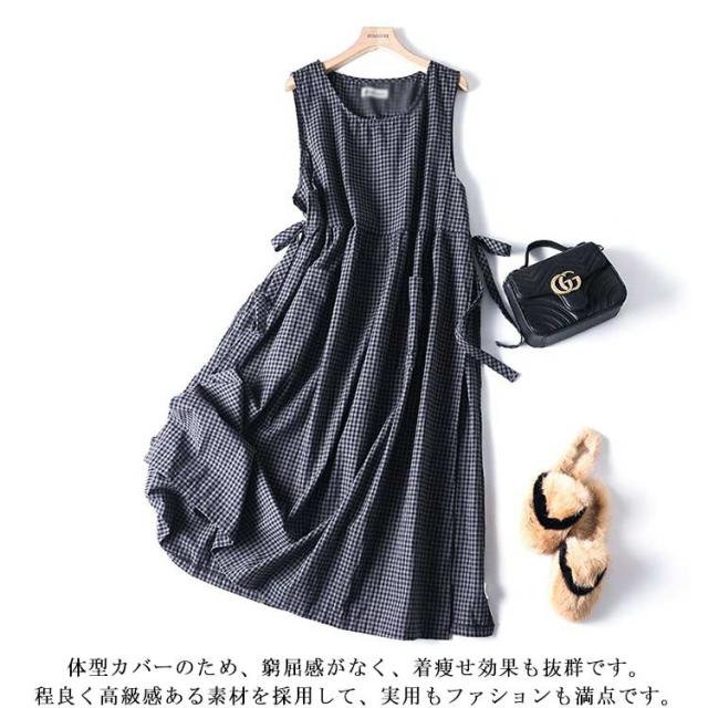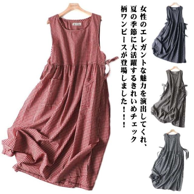 ロング丈 フレア ウエストマーク ワンピ 体型カバー ギンガムチェックワンピース ノースリーブ チェック柄 ロング 無地 Aライン ゆったり ゆるっとワンピース ギンガムチェックワンピース ノースリーブワンピース 定番 春 夏 大きいサイズ カジュアル 30代 40代