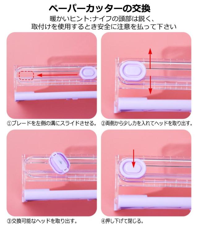 | 【優れた品質】ペーパーカッターは高品質の材料で作られており、刃は軽量で安全、耐久性のあるステンレス鋼で作られています。 【製品サイズ】ペーパーカッターは、長さ27cm、幅9cmのコンパクトでシンプルなペーパーカッターです。 【携帯性と安全性】軽量で使いやすい。刃が押された時のみ作動し、使用者(特に子供)を完全に保護します。 【使いやすさ】目盛りがはっきりと印刷された折り畳み式定規が付属しているため、正確な裁断が可能。A4用紙を一度に約5枚同時に裁断でき、刃の交換も簡単なため、途切れることなく処理できる。 【多機能】工芸品、結婚式の招待状やグリーティングカードのための理想的なカッティングツール。家庭、オフィス、学校に適しています。 ペーパーカッターの交換:暖かいヒント:ナイフの頭部は鋭く、取付けを使用するとき安全に注意を払って下さい 1.ブレードを左側の溝にスライドさせる。 2.両側から少し力を入れてヘッドを取り出す。 3.交換可能なヘッドを取り出す。 4.押し下げて閉じる。 | |