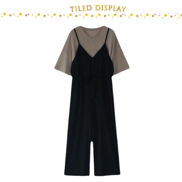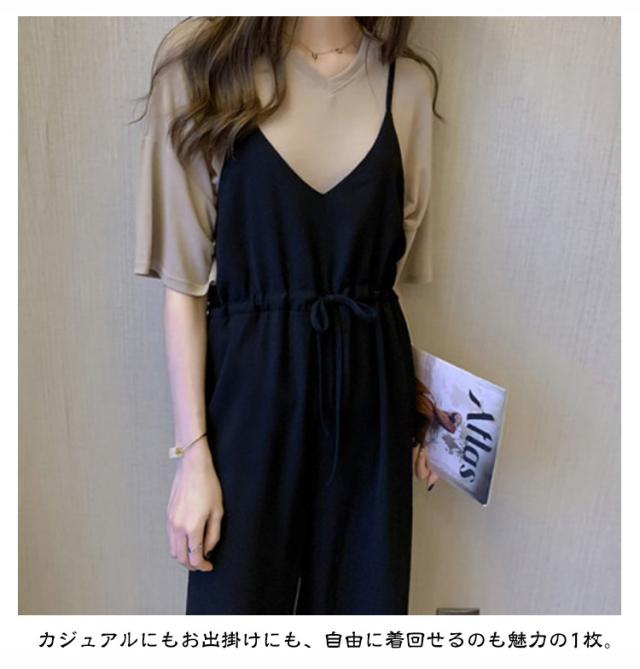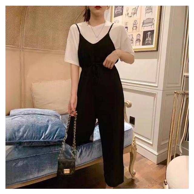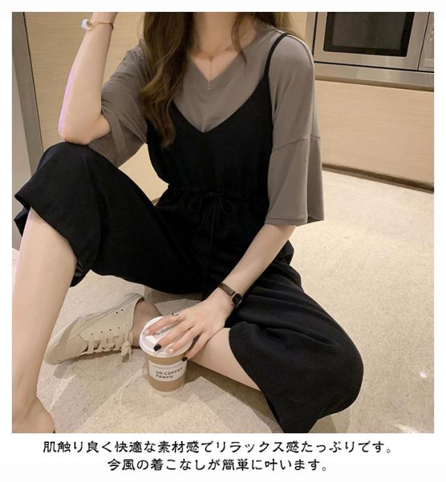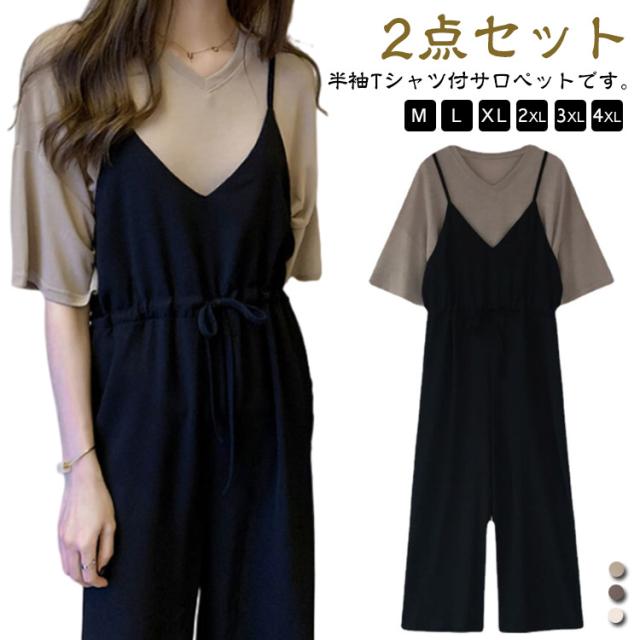 2点セット サロペットパンツ セットアップ 夏 2点セット おしゃれ レディース オールインワン 半袖 サロペット ジャンプスーツ ワイドパンツ 韓国風 上下セット 可愛い ゆったり 大きいサイズ 体型カバー カジュアル キレイめ 学生 通学 通勤