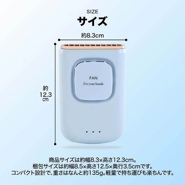 長さ調節可能なストラップで首から下げて使えます。両手フリーでマスク蒸れにもおすすめです。