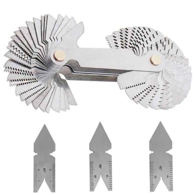 【セット内容】1 x ピッチゲージ55°(インチ)&60°(ミリ&米国?位)58枚ブレード、1 x インチ用55°センター ゲージ、 2 x メートル&米国?位用60°センター ゲージ 。