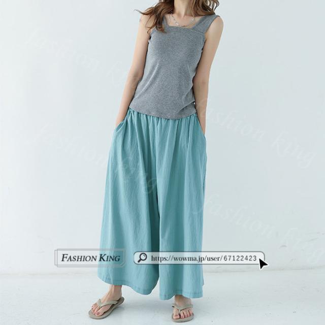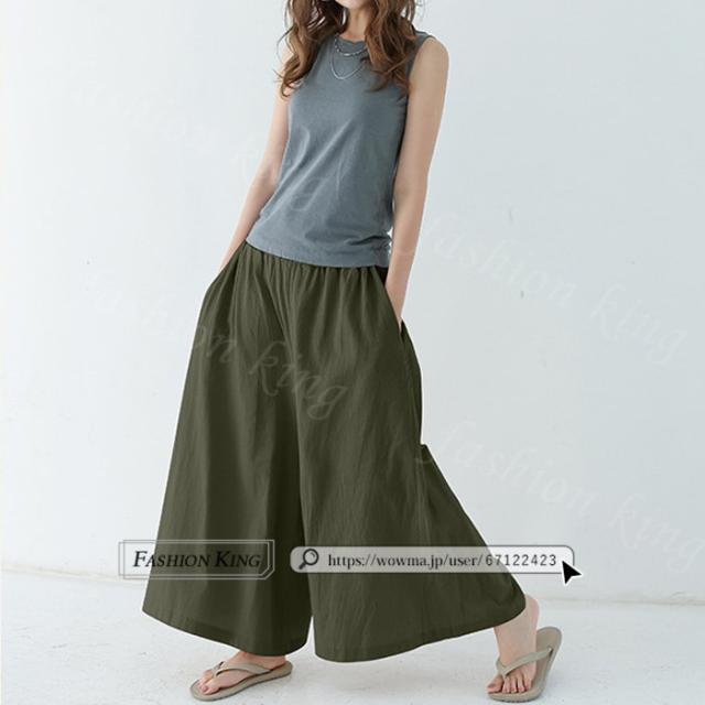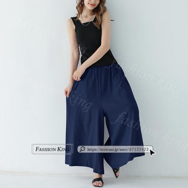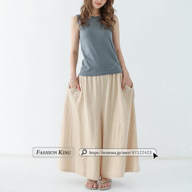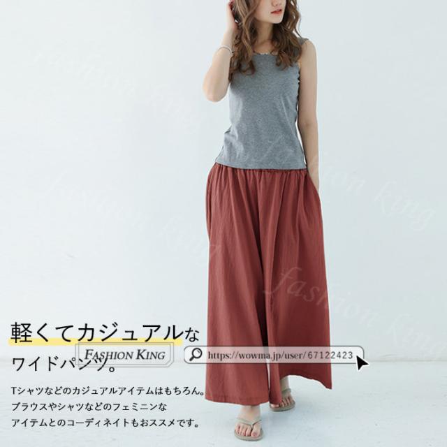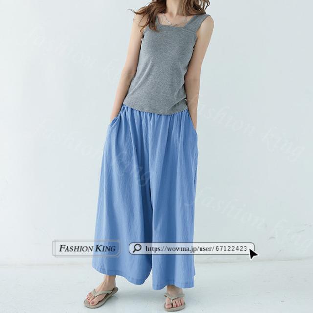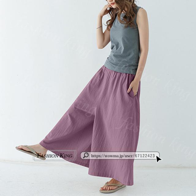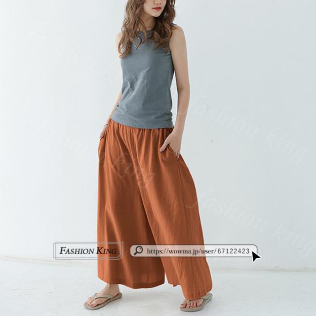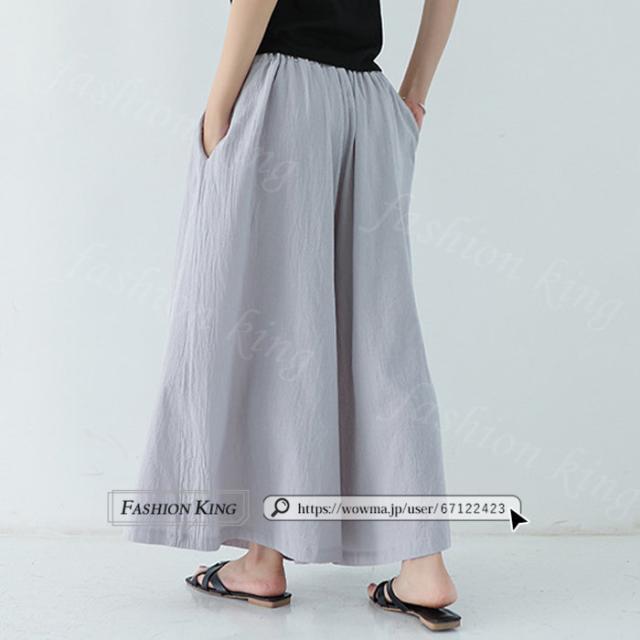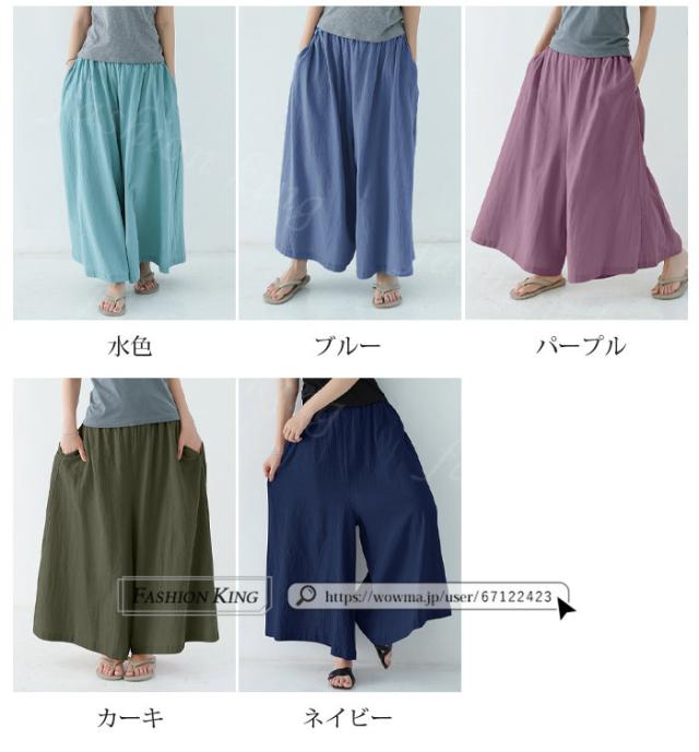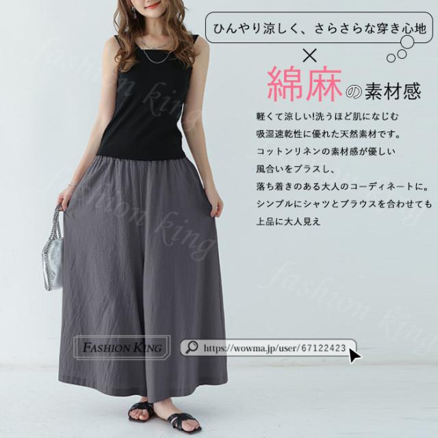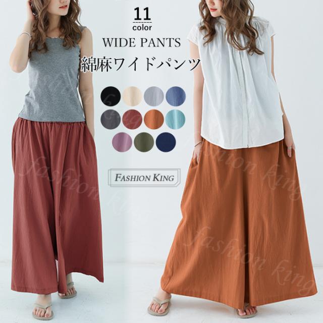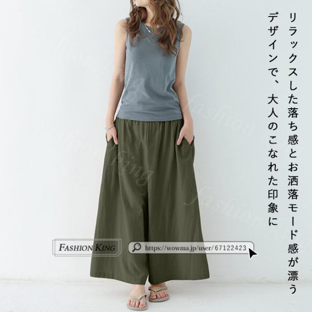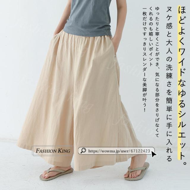 ワイドパンツ 綿麻パンツ 秋冬 春新作 レディース ガウチョパンツ ボトムス ウエストゴム パンツ 綿 コットン リネン 大人カジュアル 薄手 涼しい ポケット 涼感 低身長 高身長 ゆったり 大きいサイズ 送料無料 春 夏 入学式 入園式