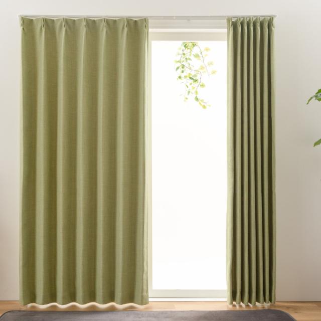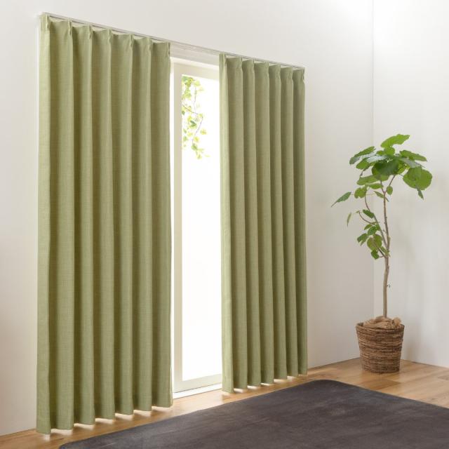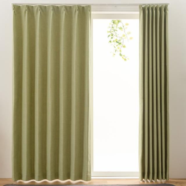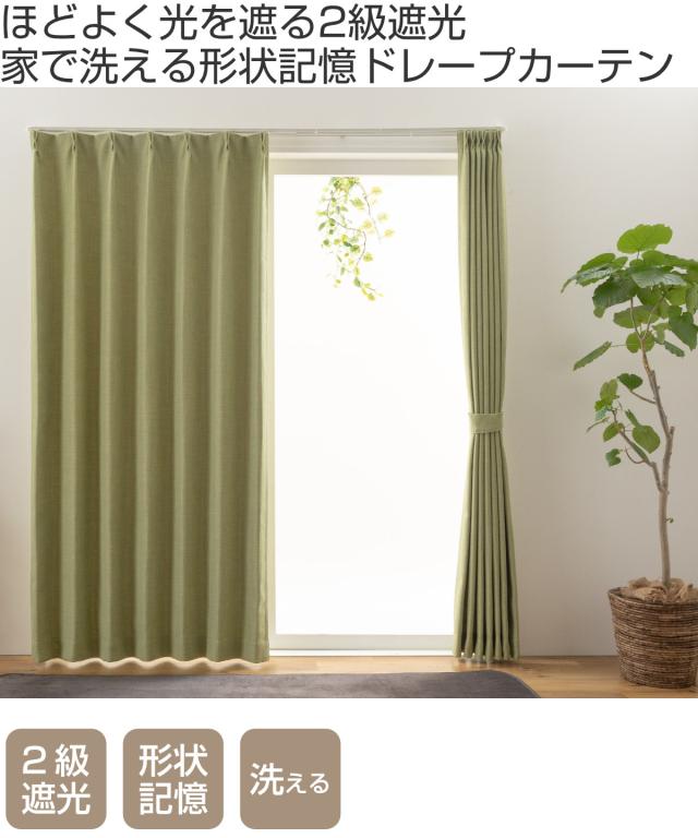 カーテン 2級遮光 ジェード 100×135〜200cm 2枚 形状記憶 洗える グリーン ( ユニベール 遮光カーテン ドレープ ドレープカーテン 2級 遮光 既製品 洗えるカーテン 形状記憶加工 インテリア 無地 2枚入 )