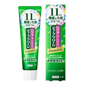 ▼3980円以上送料無料 (但し沖縄県、離島などは別途送料負担があります) 花王 ディープクリーン プレミアム 85gは歯槽膿漏を防ぐとともに、11コの機能を全部ひとつにしたプレミアム処方の薬用ハミガキです。選び抜かれた薬用成分(歯がしみるのを防ぐ・抗炎症・殺菌・歯質強化)配合。抗炎症成分(βーグリチルレチン酸)が、歯周ポケットの中までしっかり届き、歯周ポケットが深くなるのを抑制して、歯槽膿漏を防ぐ。泡立ち控えめでじっくり磨きやすいメディカルハーブの香味。高濃度フッ素(1450ppm)配合。「医薬部外品」 【4901301440990】