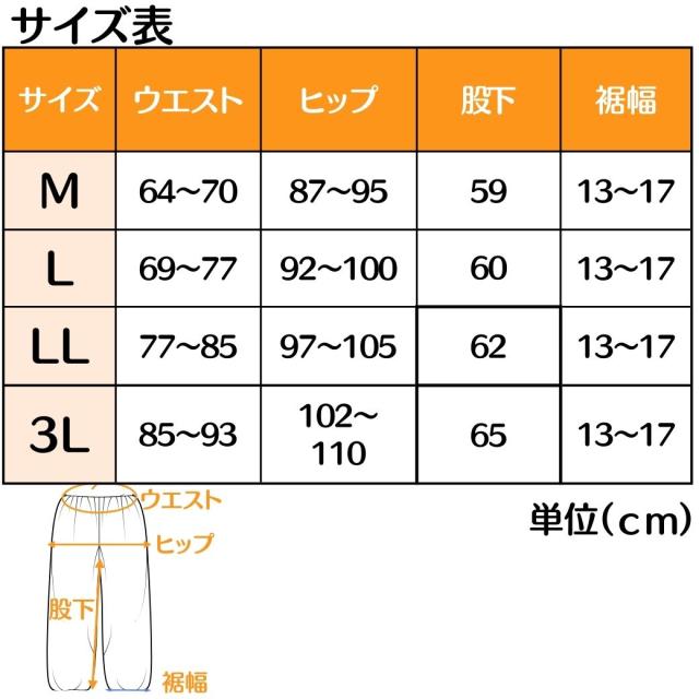 ■サイズ M/L/LL/3L4サイズ展開Mサイズウエスト64.0-70.0ヒップ87.0-95.0股下59.0Lサイズウエスト69.0-77.0ヒップ92.0-100股下60.0LLサイズウエスト77.0−85.0ヒップ97.0-105股下62.03Lサイズウエスト85.0-93.0ヒップ102-110股下65.0■柄 和柄フクロウ・ウサギ・トンボ■生産国 日本■テイスト(ファッション) カジュアル■洗濯表示 家庭洗濯■シーズン 秋冬■素材(生地・毛糸) ポリエステル:ポリエステル100%■カラー ウサギ柄:ムラサキ/青/黒フクロウ柄:ムラサキ/青/黒トンボ柄:ムラサキ/青/黒■商品説明文 かわいい柄のソフトで動きやすい裏起毛もんぺ日本製 日本製の裏起毛もんぺ。股上をしっかり取っているのでお腹や背中が出ることなくガーデニングや農作業など、作業性の良い商品です。濃い柄物で汚れが目立たず洗っても代わり映えする事がありません。前右側に大き目のポケットが付いています。ポケットは大きく深いので安心。また、ウエストは総ゴムです。柄はかわいい「ふくろう」「とんぼ」「うさぎ」の柄になっています。 ポリエステル100%の四段スムースニットで伸縮性があり、ソフトで動きやすい素材です。 裾ゴムはゆったりさせました。 サイズ ウエスト ヒップ ワタリ 股下 総丈 M 64〜70cm 112cm 32cm 57cm 90cm L 68〜80cm 116cm 33cm 61cm 93cm LL 78〜90cm 120cm 34cm 65cm 97cm 素材 ポリエステル100% 備考 注意事項 ※できるだけ忠実に再現するよう努力しておりますが、ディスプレイ画面等の環境上、ページで見た色と実際の商品の色とは多少違う場合がございます。ご不明な点はお問い合わせください。
