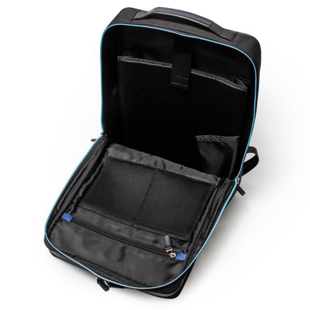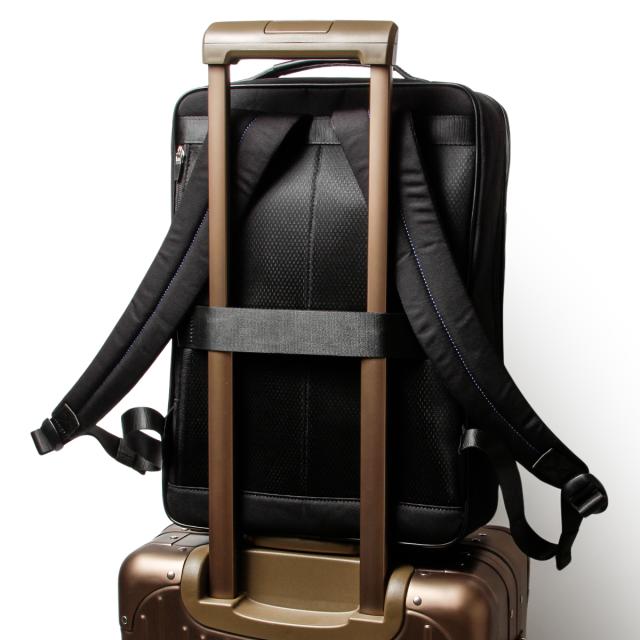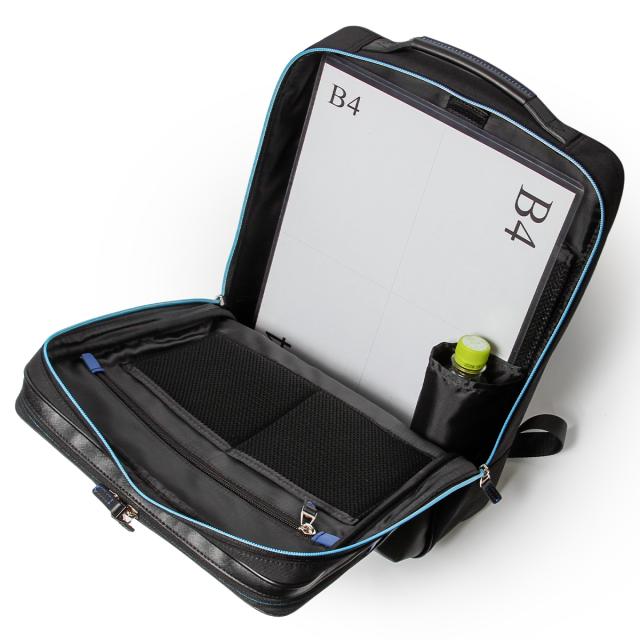 | 自立&しっかりフォルムLANIN en Bleu ビジネスリュック スッキリとしたキレイ目フォルムのランバンオンブルーのA4サイズのセミハード系ビジネスリュック。2ルームに分かれた内装はノートPC・書類・小物類の分別がしやすく、自立可能なセミハード型で様々な環境のビジネスシーンに活躍します。また、本体素材は撥水性も兼ね備えています。 B4ファイルを収納可能なビジネスリュック。抜群の収納機能で、普段の通勤から出張まで多くのシーンで活躍します。 カバンの内側には、15.6インチPC対応ポケット、ファスナーポケット、ポケットが2つ、ペットボトルホルダーがあります。また、カバンの前側のファスナーを開くと、ポケットが大小1つずつ、ペンさしが3つ、細かいものを引っ掛けることができるゴムベルトが1つ付いています。マチがあるつくりになっているので、小物を収納して膨らんでしまう心配もございません。 カバンの背側にはファスナーポケットがあり、貴重品などの収納も安心です。キャリーオン機能付きで、スーツケースに取り付けが可能です。 |