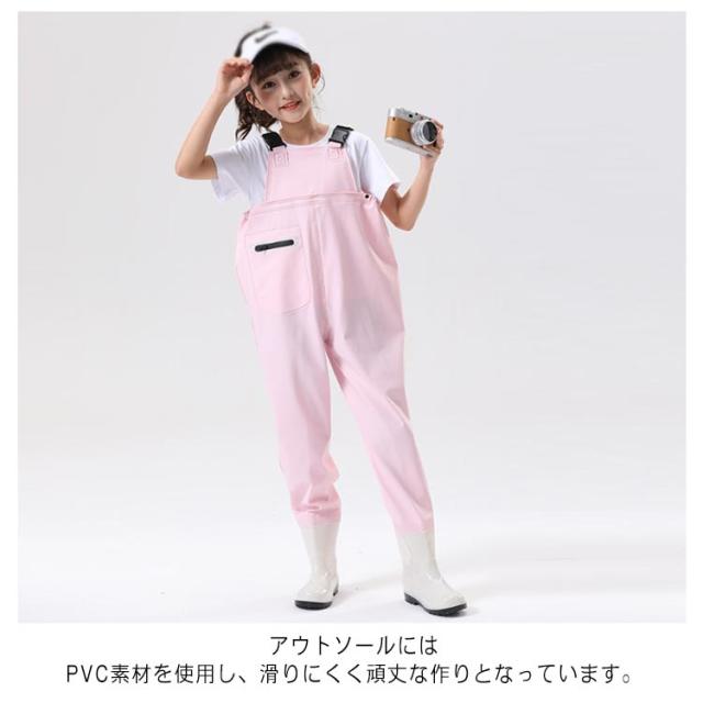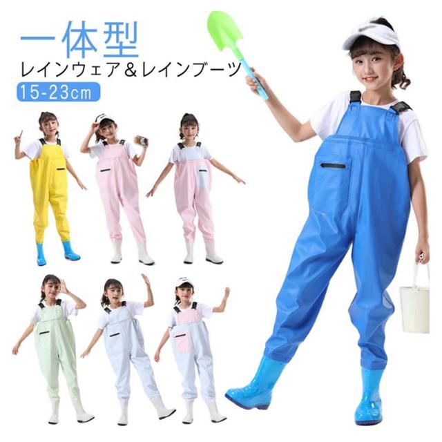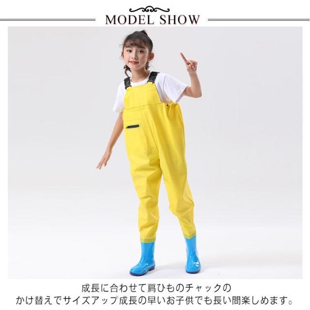 プレイウェア レインウエア キッズ レインブーツ お砂場着 子供 胴長 オーバーオール 一体型 砂場 レインパンツ レインシューズ キッズ ズボン 子供用 ウェーダー 胴長 レインウエア 胴付長靴 女の子 男の子 可愛い 遊び着 防水 防風 防汚 滑り止め 雨具 通学 おしゃれ