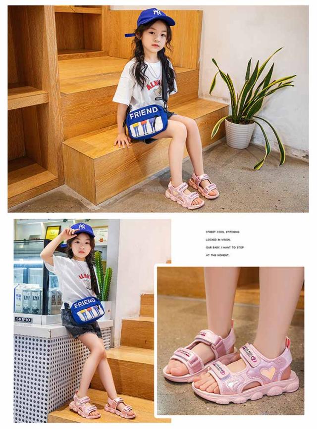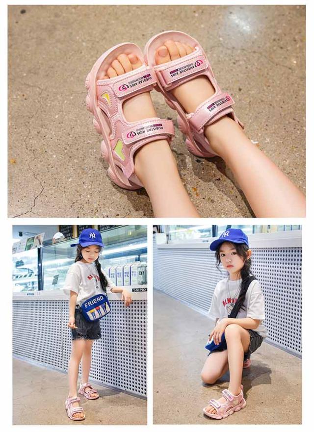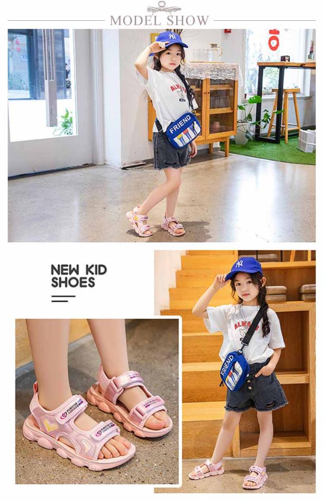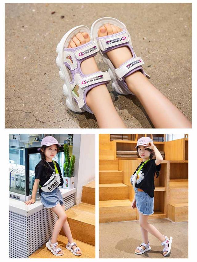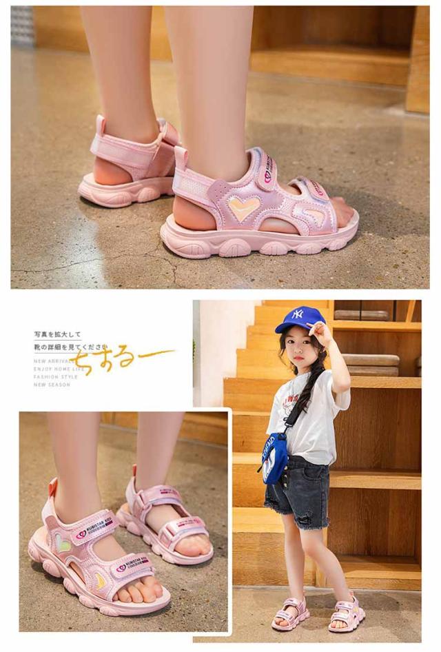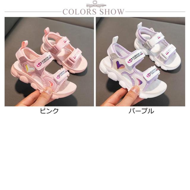 スポサン 可愛い キッズ かわいい サンダル スポーツサンダル キッズ 女の子 ガールズ 韓国風 キッズ ジュニア 子供 子ども 子ども靴 スポサン 軽量 かわいい おしゃれ トレンド グラデーション ホワイト/ピンク アウトドア 海 プール 夏 ベルクロ ハート