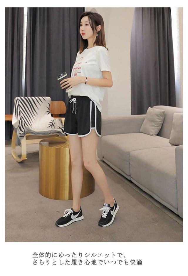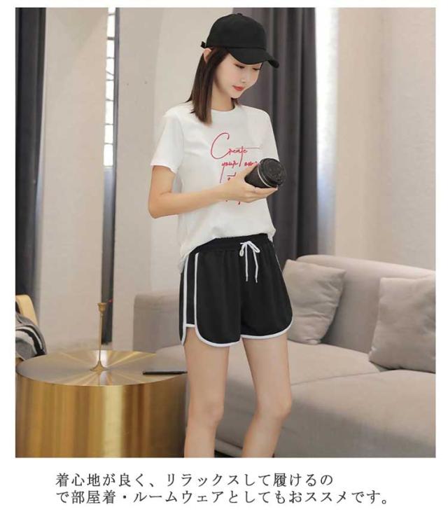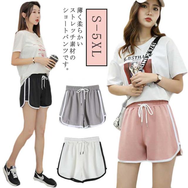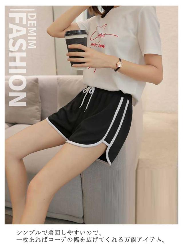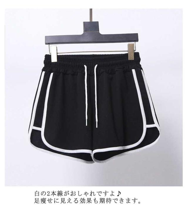 配色ショートパンツ レディース スポーツウェア ボトムス ショート丈 無地 サイド ライン ウエストゴム カジュアル スポーティ スポーツ ルームウェア 部屋着 ヨガ ダンス かっこいい 送料無料 ランニング トレーニング ルームウェア パジャマ