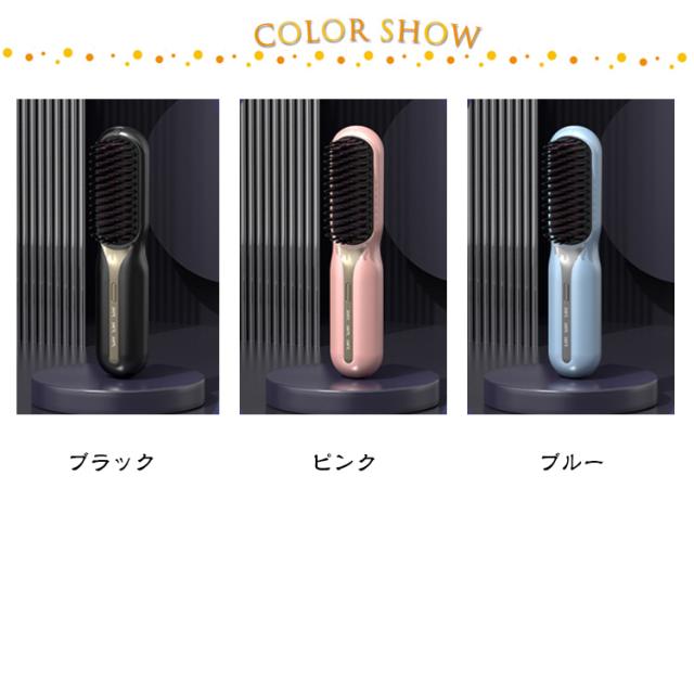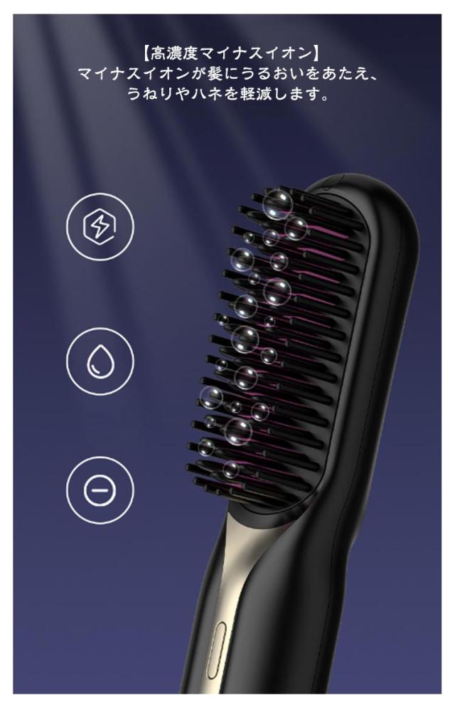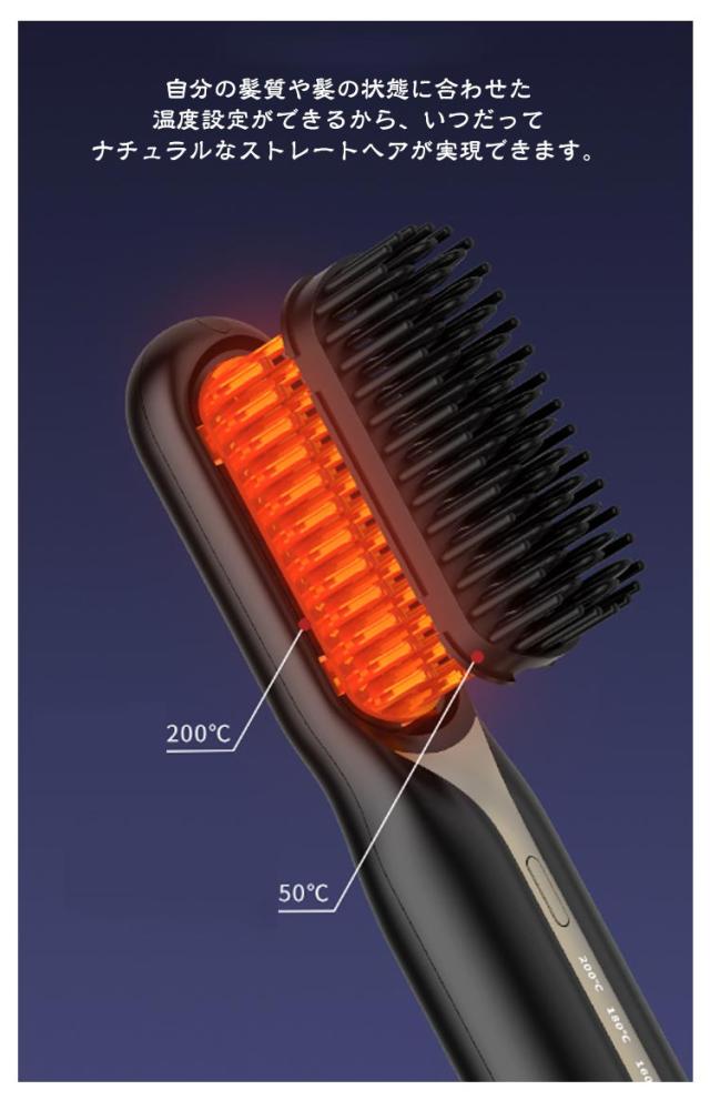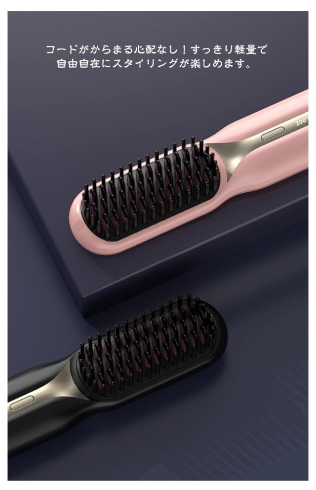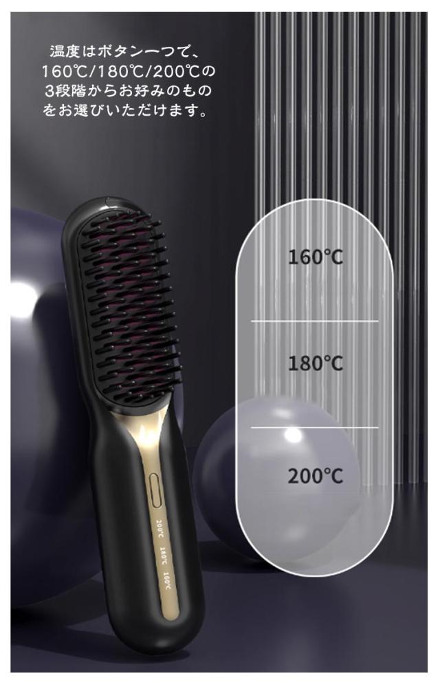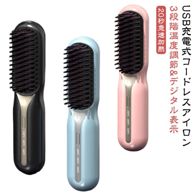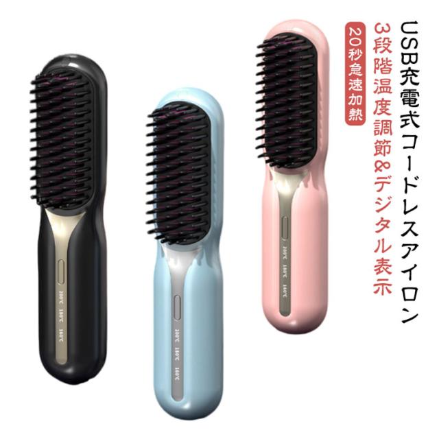 アイロンブラシ ヒートブラシ コードレス ヘアアイロン ブラシ ミニ USB 充電式 ストレートアイロン ブラシ 160℃/180℃/200℃ 温度3段階調節 マイナスイオン 静電気防止 火傷防止 温度表示 大容量 旅行 携帯用 ポータブル 持ち運び