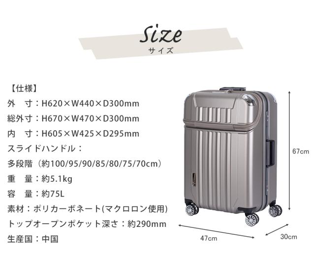 トラベリスト ニーズ Lサイズ フレームトップオープン スーツケース 大型 TSAロック 送料無料 1年間保証 4輪 フロントオープン ブランド 約75L 宿泊目安4〜7泊 TRAVELIST 協和 76-35070
