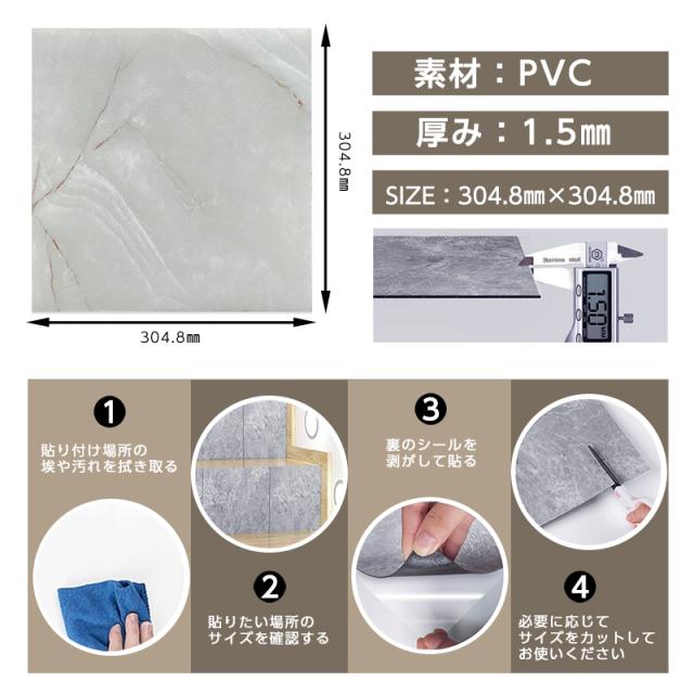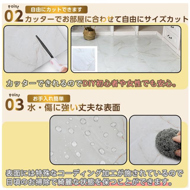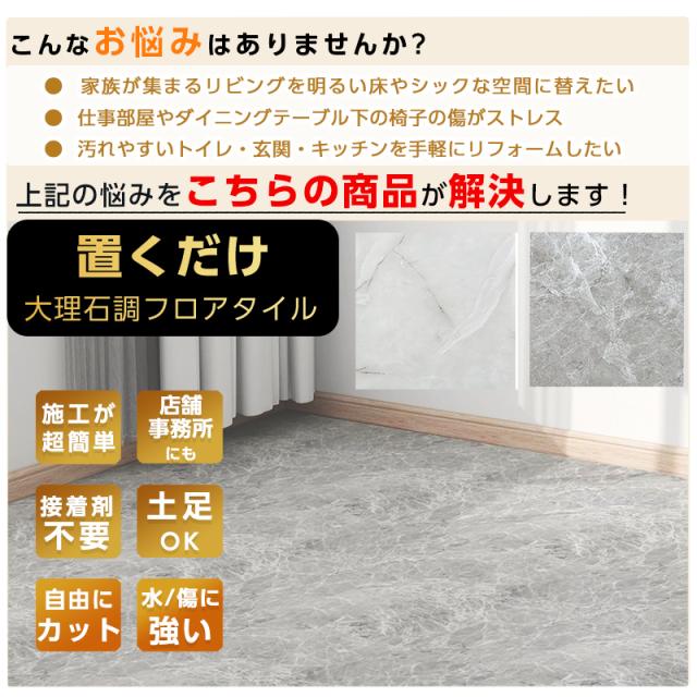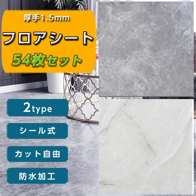 フロアタイル フロアシート フローリングタイル 54枚 大理石風フロアタイル 粘着シート 接着剤不要 初心者 賃貸 防水 リノベーション DIY フローリングマット 厚手1.5mm フロア 床 大理石 貼るだけ 置くだけ シール リビング キッチン 洗面所 トイレ 施工簡単 模様替え