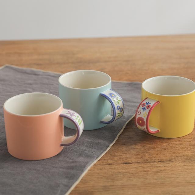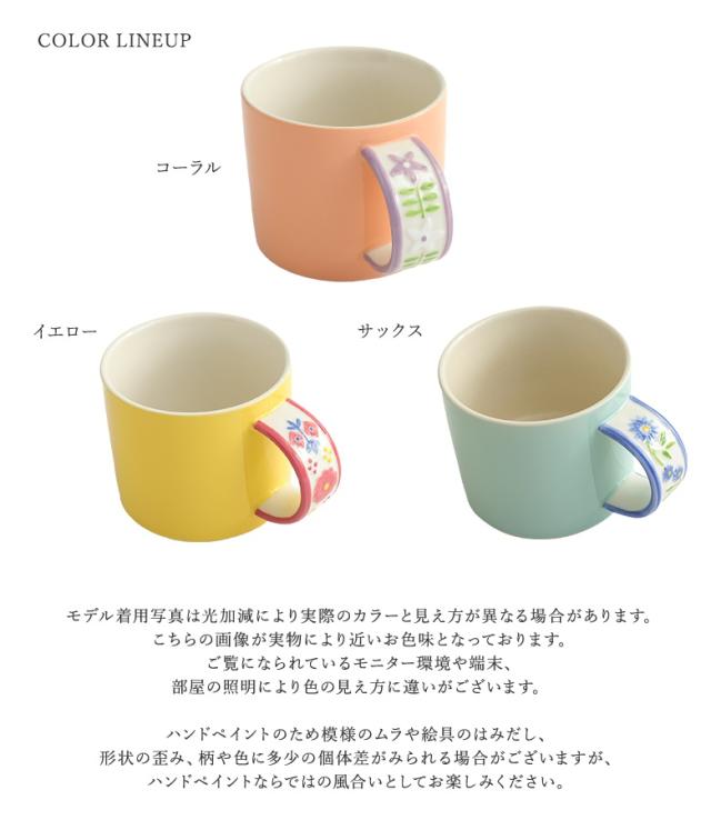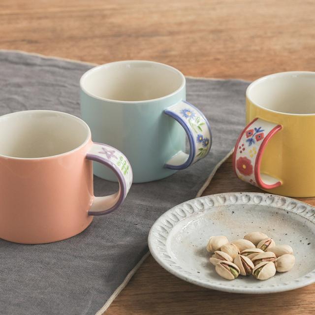マグカップ 食器 コップ スープマグ コーヒーカップ ティーカップ キッチンツール ギフト プレゼント 結婚祝い 食洗器 陶器 330ml 電子レンジ対応 【TP】 シンプル ライフスタイル雑貨 贈り物 お祝い 引き出物 プチギフト キッチン雑貨 引っ越し祝い 小物 食洗器対応 花柄 フラワーデザイン 手作業 ハンドペイント 花模様 デスクワーク 在宅 座り仕事 おうち時間 リビング ティータイム おしゃれ イエロー 黄色 ミモザ ニュアンスイエロー ピンク 桃色 グレイッシュピンク コーラルピンク ブルー 青 水色 ライトブルー ニュアンスブルー サックス[ID]25zm0fo