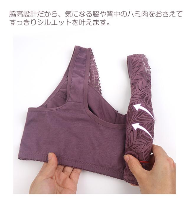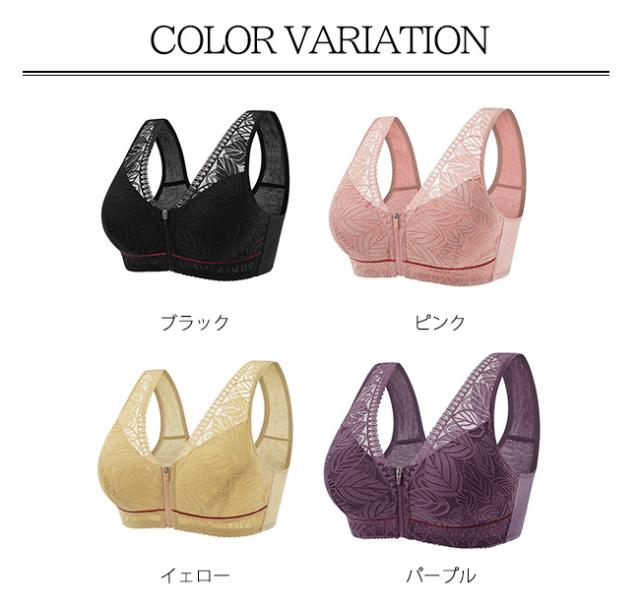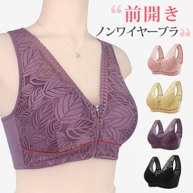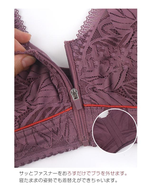 前開き ブラ ナイトブラ フロントファスナー フロントホック ブラジャー ノンワイヤー レース 花柄 夜ブラ マタニティ 脇高 脇肉 産前 産後 授乳 パッド 昼夜兼用