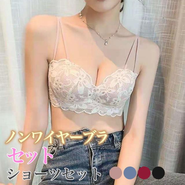 ノンワイヤーブラ セット ショーツセット かわいい ショーツ 脇高 ブラジャー フラワー 刺しゅう ブラショーツセット 女性 下着 レディース ブラショーツ かわいい下着 ブラ 小胸 ブラセット 送料無料 盛れる 脇肉 レース 谷間 寄せる デコルテ スタイルアップワイヤレス