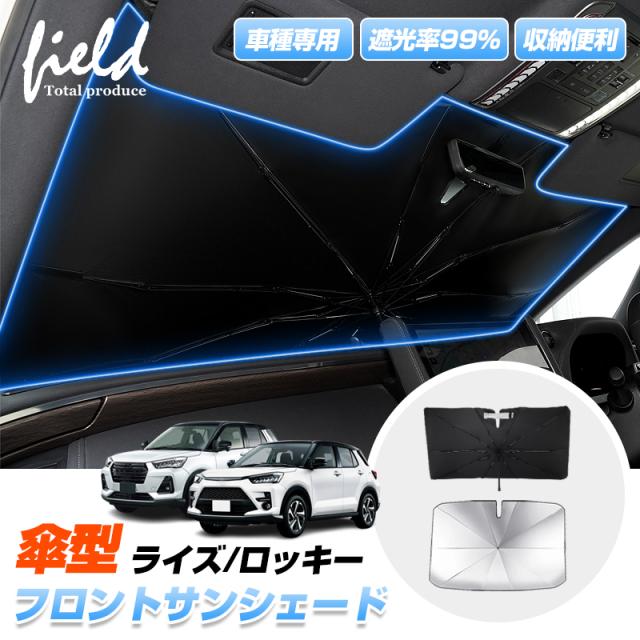 ▼車種専用 傘型サンシェード ライズ RAIZE ロッキー ROCKY フロントシェード 車用パラソル サンシェード 傘型 カーシェード 日よけシェード 遮光カーテン 遮光 断熱 UV紫外線カット 暑さ対策 キャンパー 仮眠 車中泊グッズ カー 車 カーテン シェード