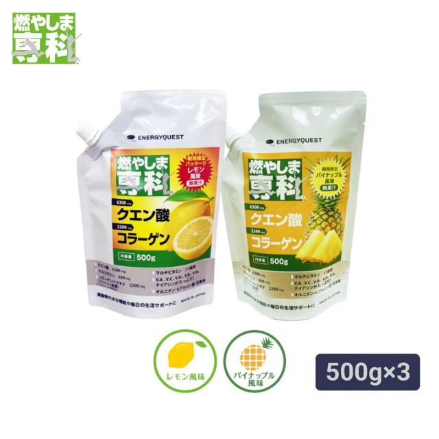 燃やしま専科 500g×3袋セット クエン酸 サプリ 国産 粉末 食用 コラーゲン グルコサミン 葉酸 ビタミン ミネラル 大容量 お得 送料無料 ヒアルロン酸 美容 健康 飲み物 作り方 栄養補給 プレゼント ギフト 1袋あたり ペットボトル 50本分